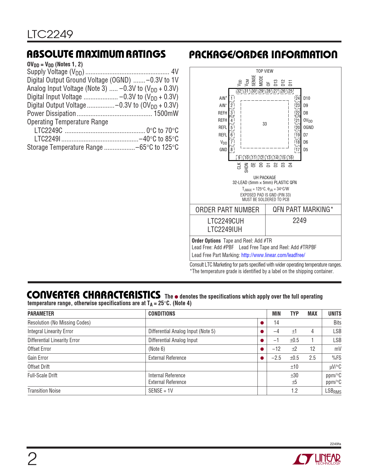 Datasheet LTC2249 (Analog Devices) - 2