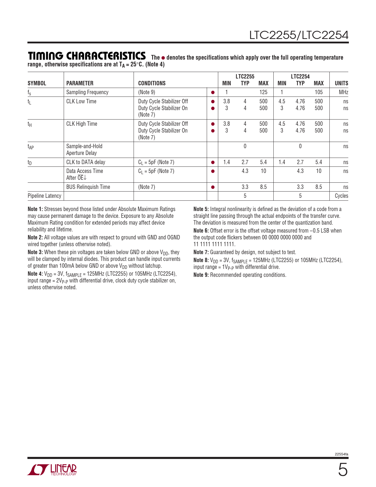 C. (Note 4) LTC2255 LTC2254 SYMBOL PARAMETER CONDITIONS MIN TYP MAX MIN TYP MAX UNITS