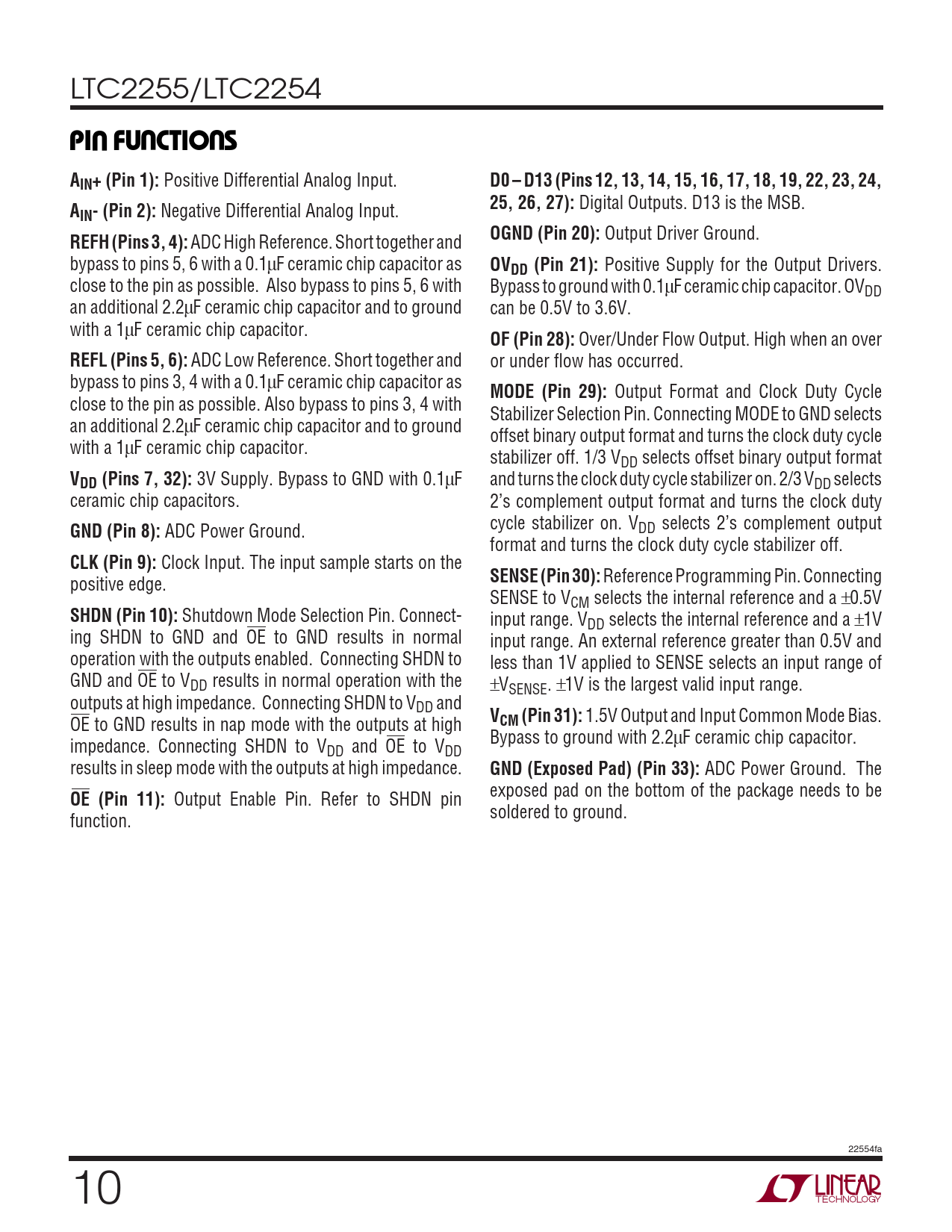 Datasheet LTC2255, LTC2254 (Analog Devices) - 10