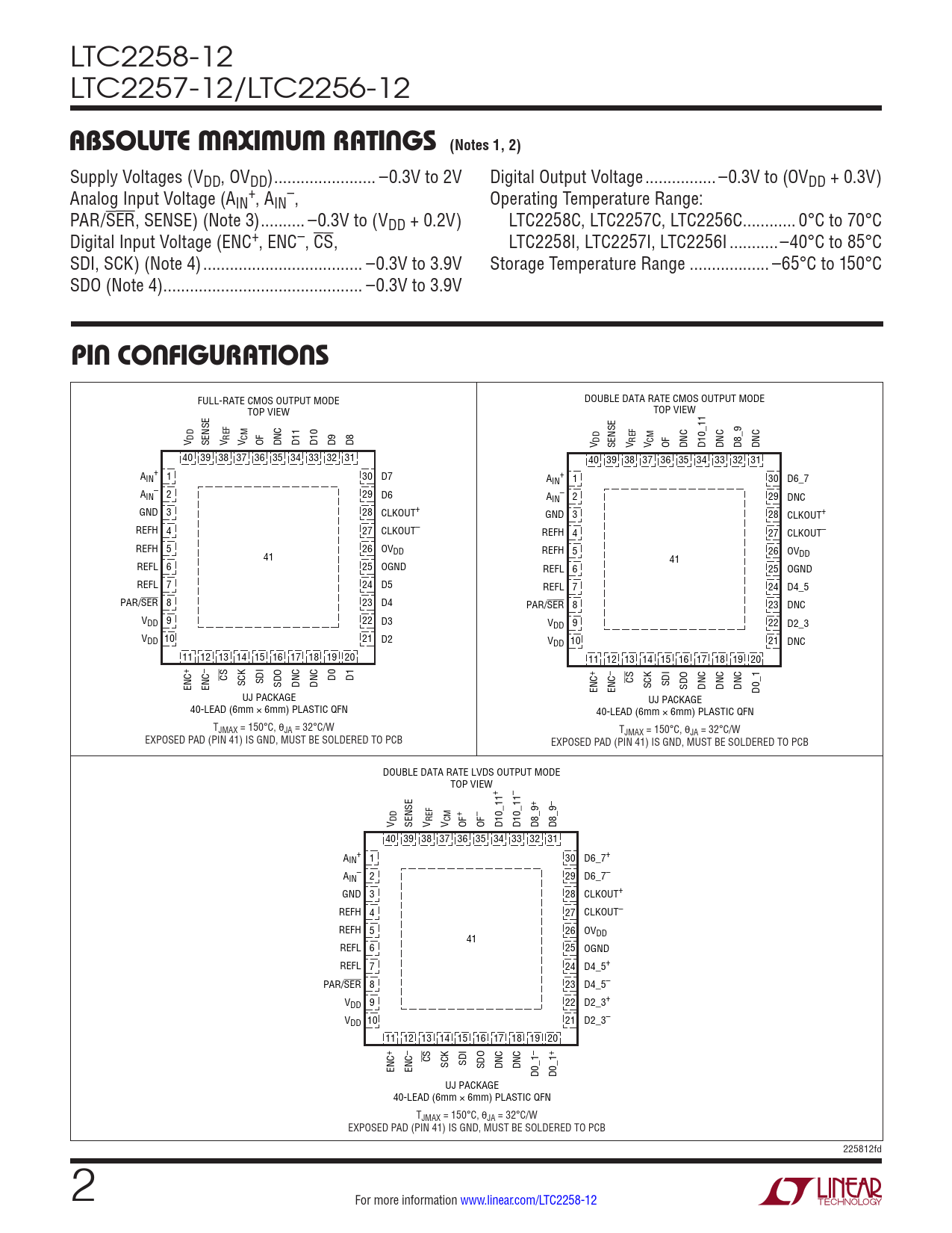 Datasheet LTC2258-12, LTC2257-12, LTC2256-12 (Analog Devices) - 2