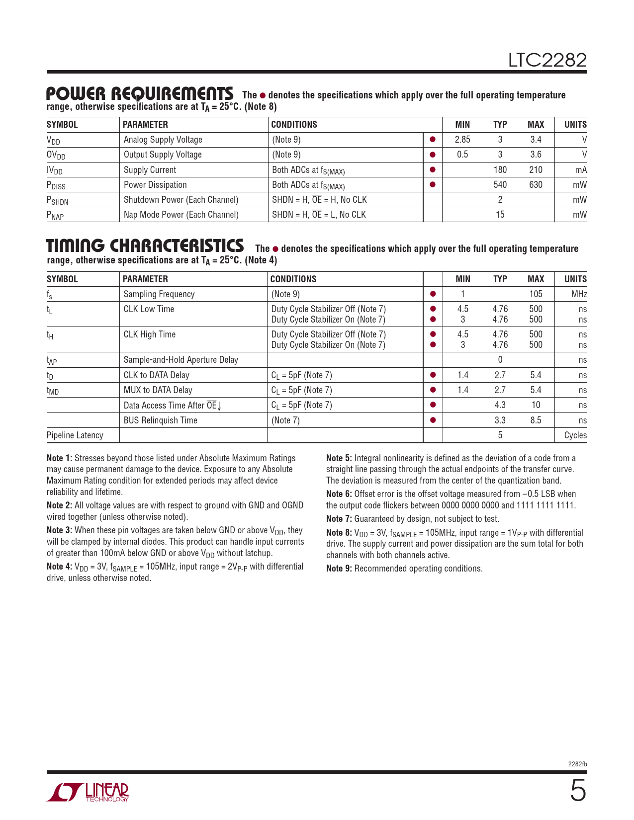 Datasheet LTC2282 (Analog Devices) - 5