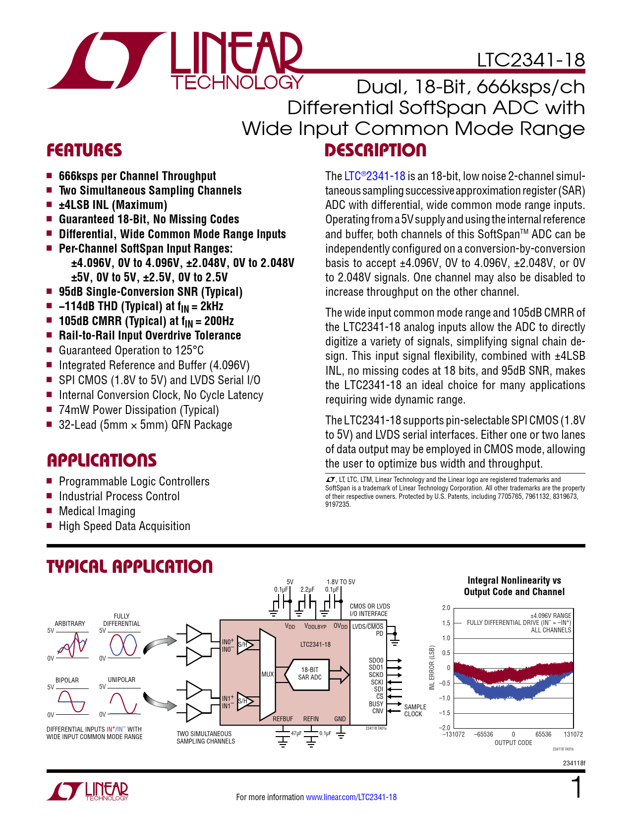 The LTC®2341-18 is an 18-bit, low noise 2-channel simul- n