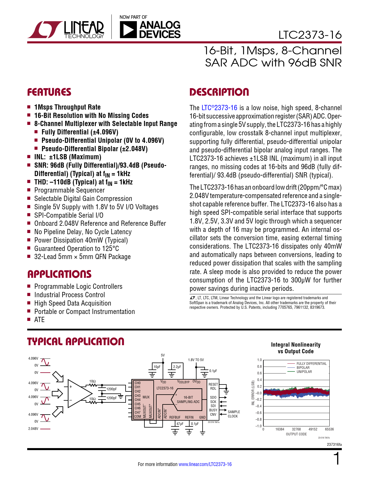 LTC2373-16 achieves ±1LSB INL (maximum) in all input n