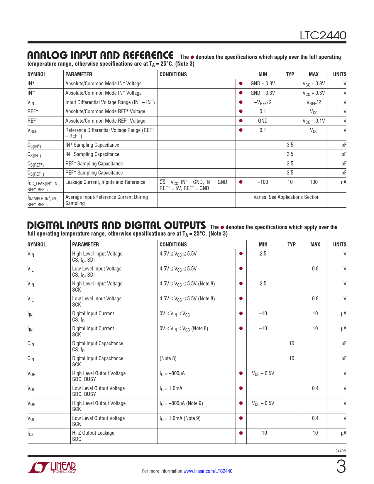 ANALOG INPUT AND REFERENCE. The. denotes the specifications which apply over the full operating