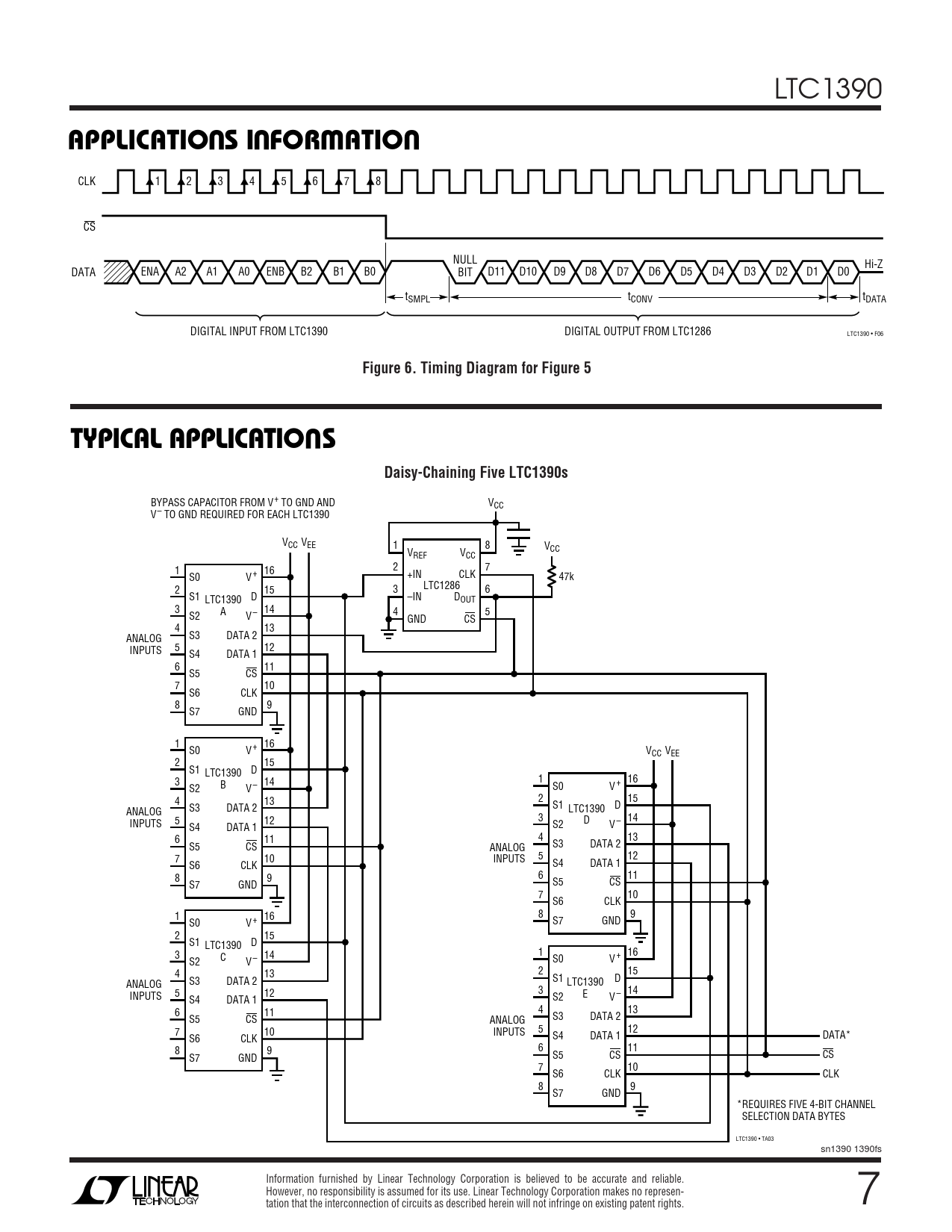 APPLICATIO S I FOR ATIO Figure 6 Timing Diagram for Figure 5 TYPICAL APPLICATIONS N Daisy-Chaining Five LTC1390s