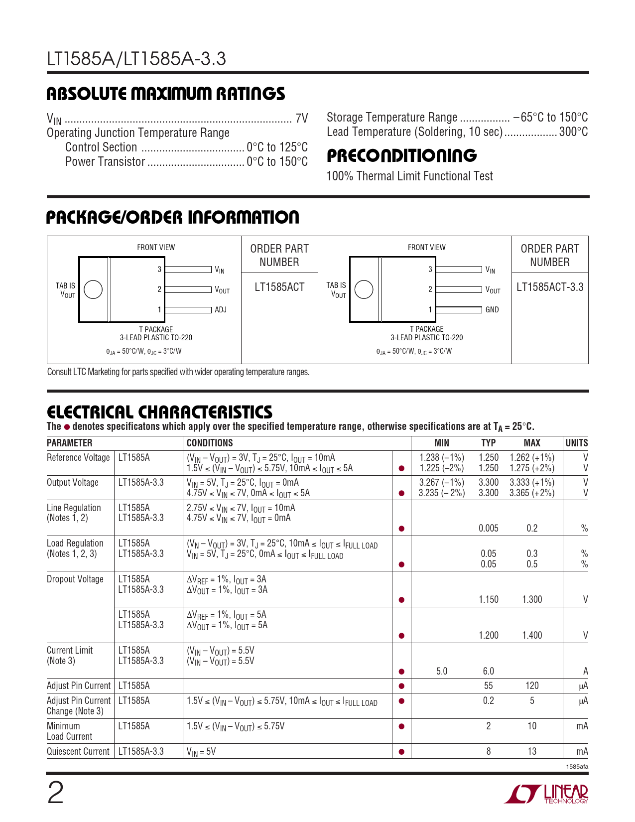 Datasheet LT1585A, LT1585A-3.3 (Analog Devices) - 2