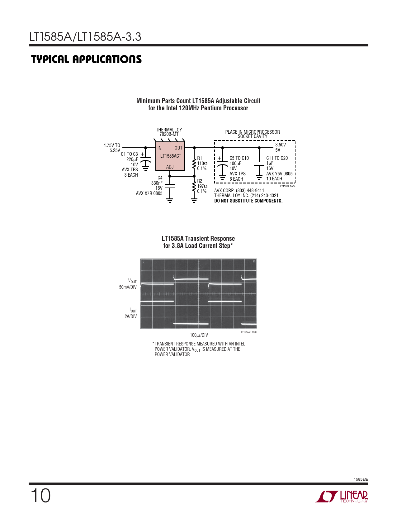 TYPICAL APPLICATIONS N. Minimum Parts Count LT1585A Adjustable Circuit. for the Intel 120MHz Pentium Processor