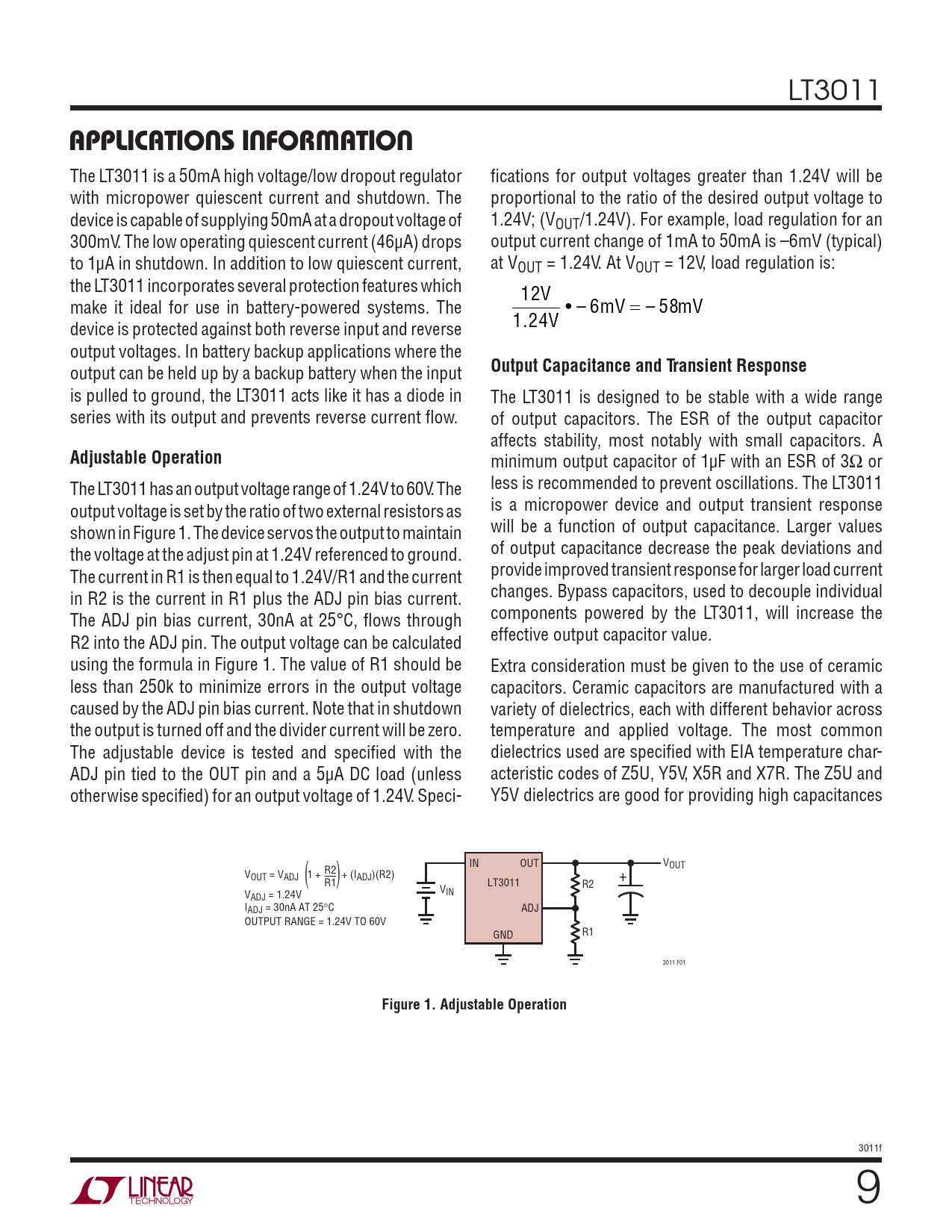 APPLICATIONS INFORMATION. Output Capacitance and Transient Response. Adjustable Operation. Figure 1. Adjustable Operation