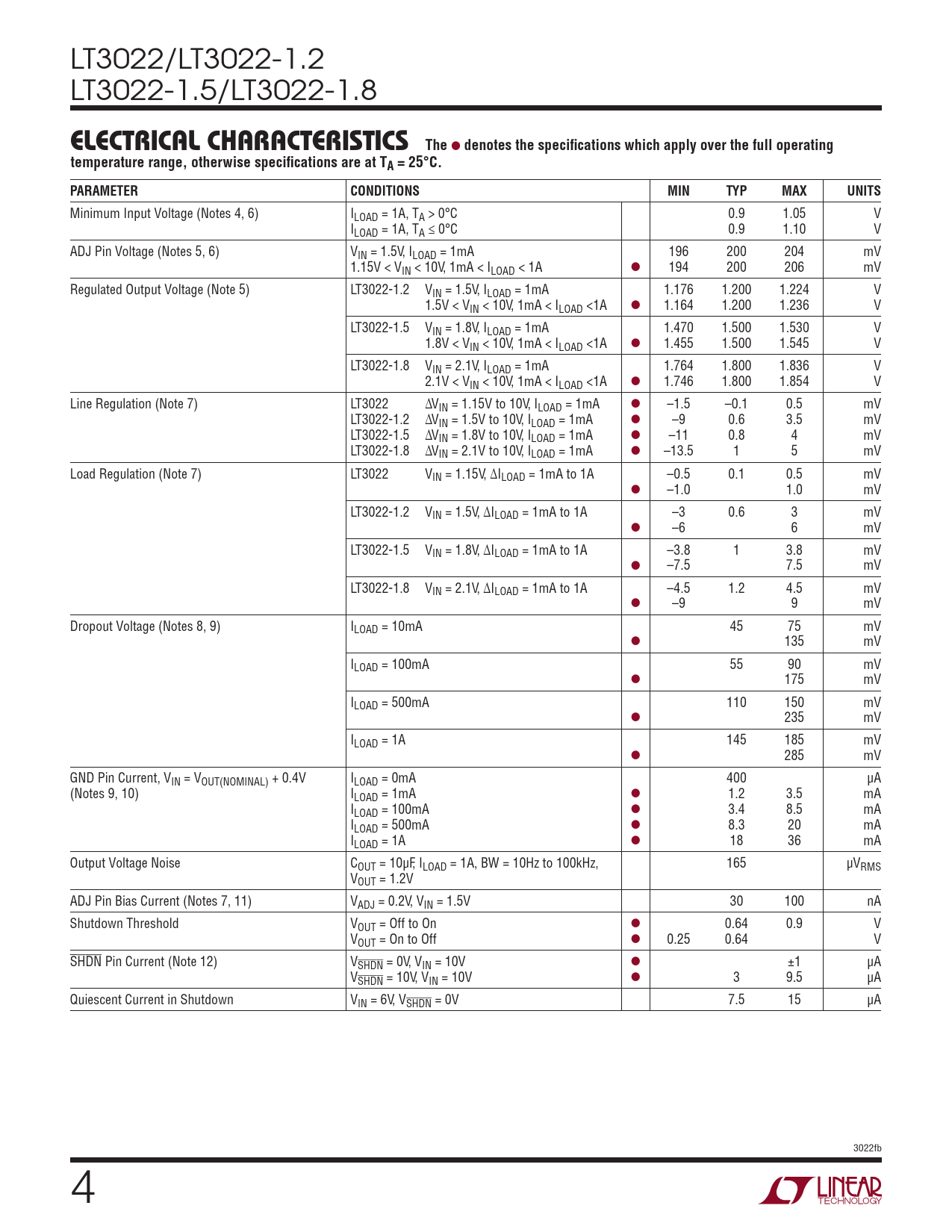 Datasheet LT3022, LT3022-1.2, LT3022-1.5, LT3022-1.8 (Analog Devices) - 4