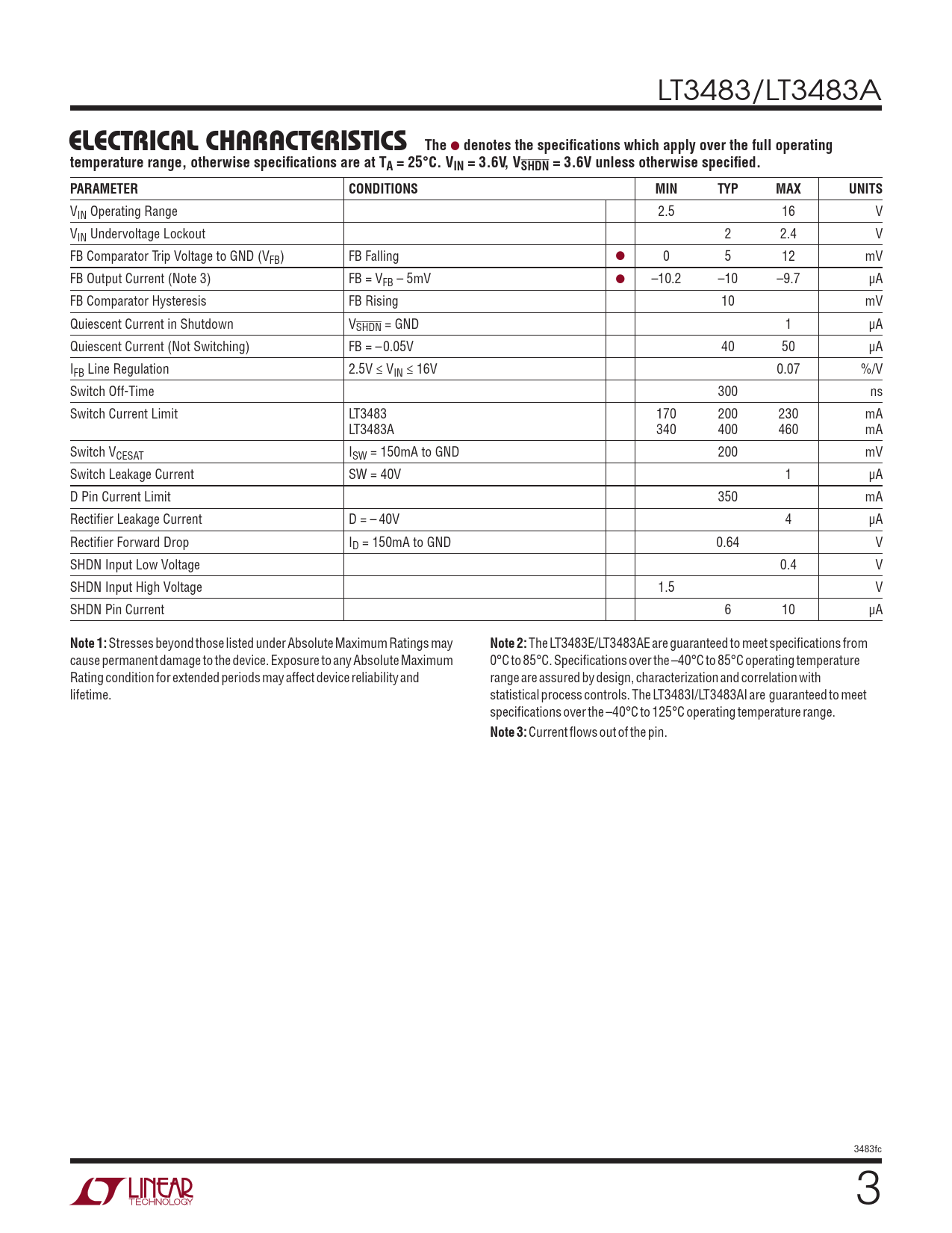 Datasheet LT3483, LT3483A (Analog Devices) - 3