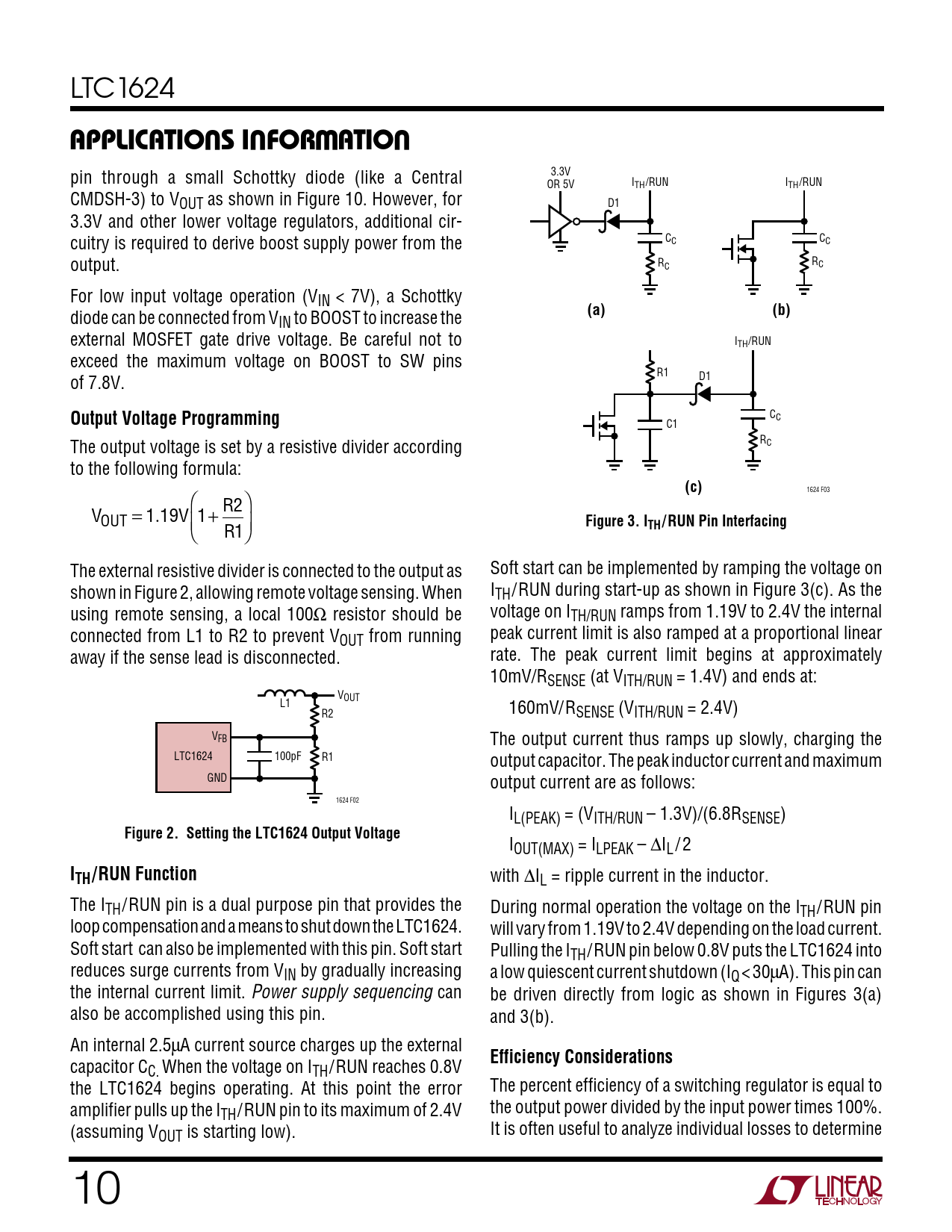 APPLICATIONS INFORMATION (a) (b) Output Voltage Programming (c) Figure 3 I TH/ RUN Pin Interfacing