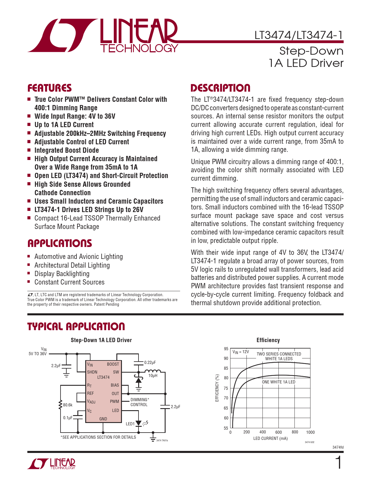 Datasheet LT3474, LT3474-1 (Analog Devices)