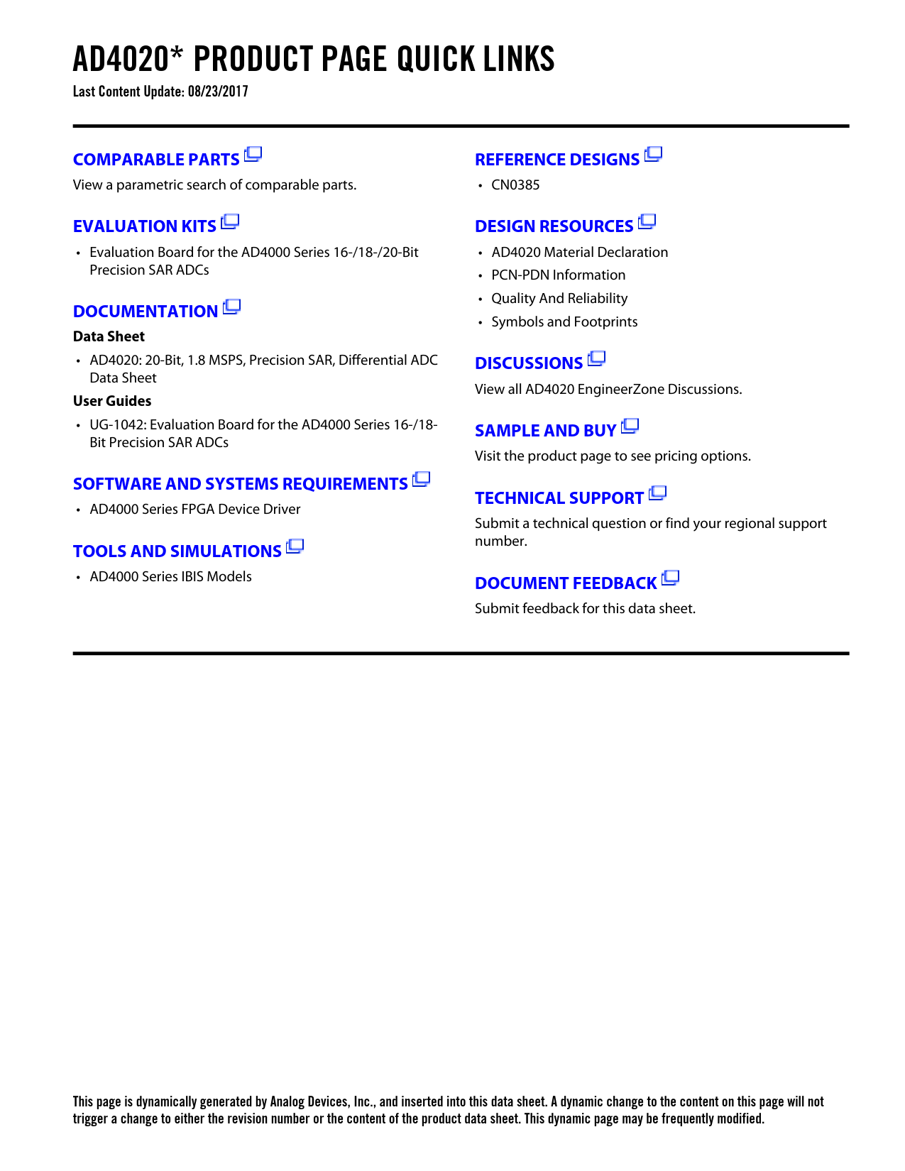 Seiten / Seite37 / 2 — AD4020* PRODUCT PAGE QUICK LINKS Last Content Update: 08/23/2017. …