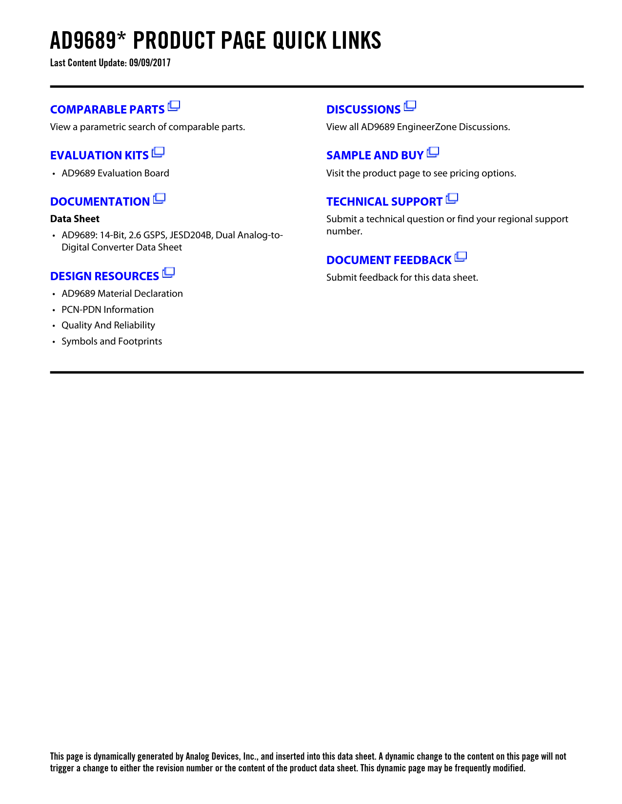Submit a technical question or find your regional support • AD9689: 14-Bit, 2.6 GSPS, JESD204B, Dual Analog-to- number. Digital Converter Data Sheet