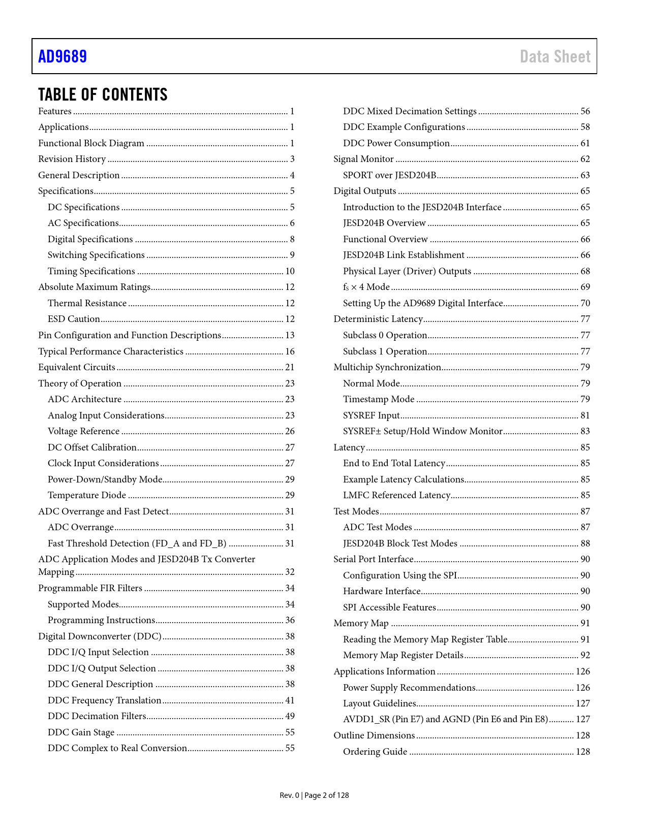 Seiten / Seite129 / 3 — AD9689. Data Sheet. TABLE OF CONTENTS