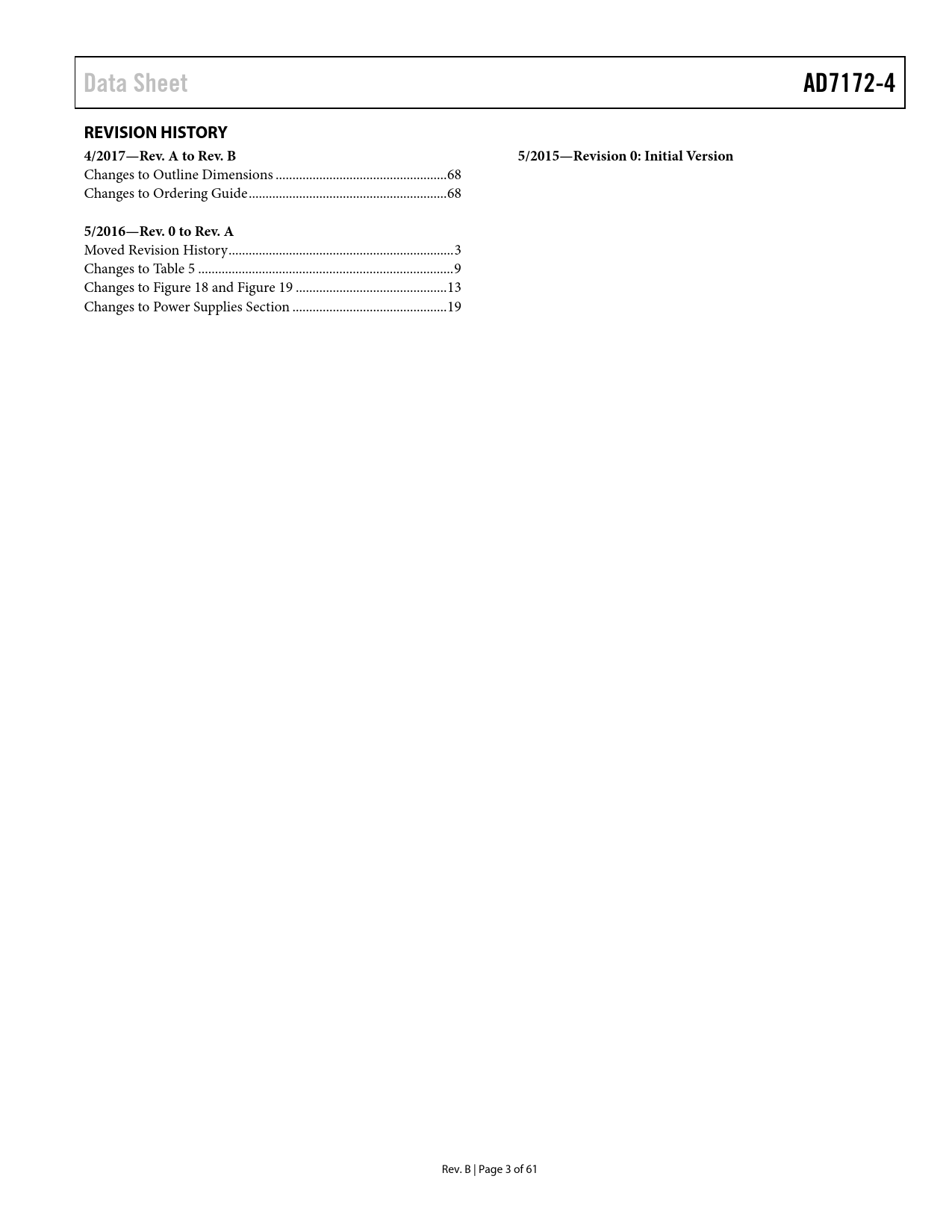 | Seiten / Seite | 62 / 4 — Data Sheet. AD7172-4. REVISION HISTORY. 4/2017—Rev. A to Rev. B. … |