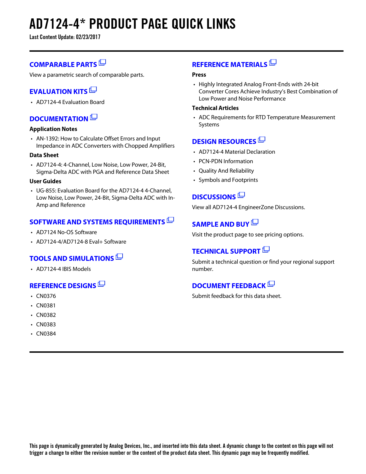 Seiten / Seite92 / 2 — AD7124-4* PRODUCT PAGE QUICK LINKS Last Content Update: 02/23/2017. …