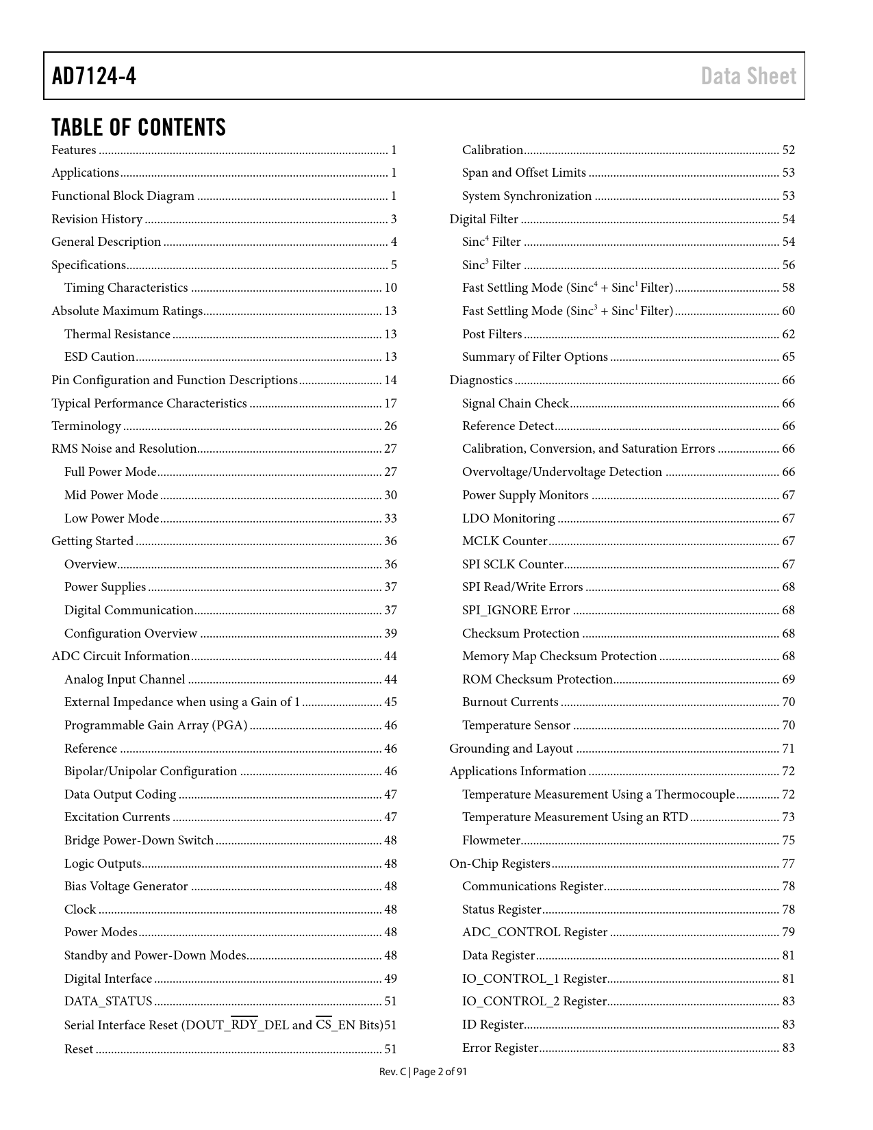 AD7124-4 Data Sheet TABLE OF CONTENTS