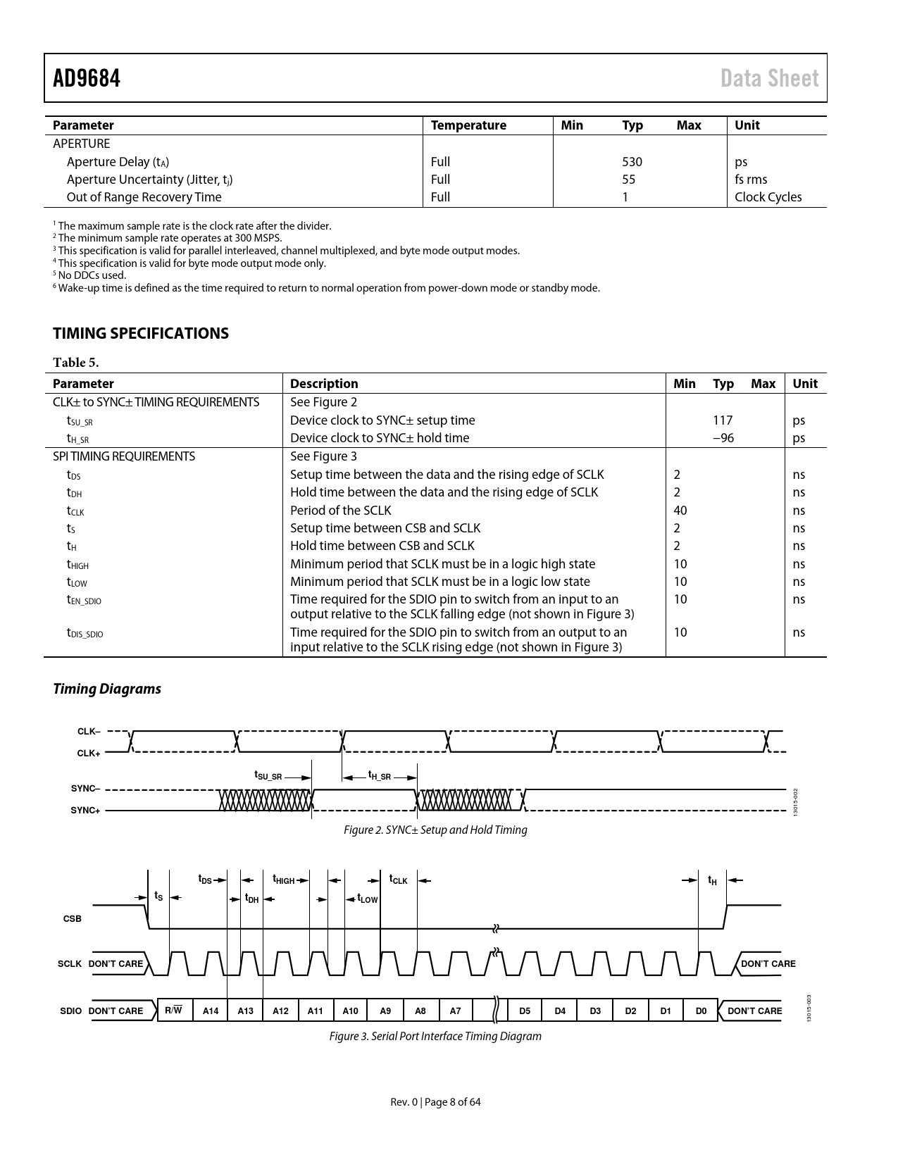 AD9684. Data Sheet. Parameter. Temperature. Min. Typ. Max. Unit. TIMING SPECIFICATIONS. Table 5. Parameter. Description. Min Typ Max Unit