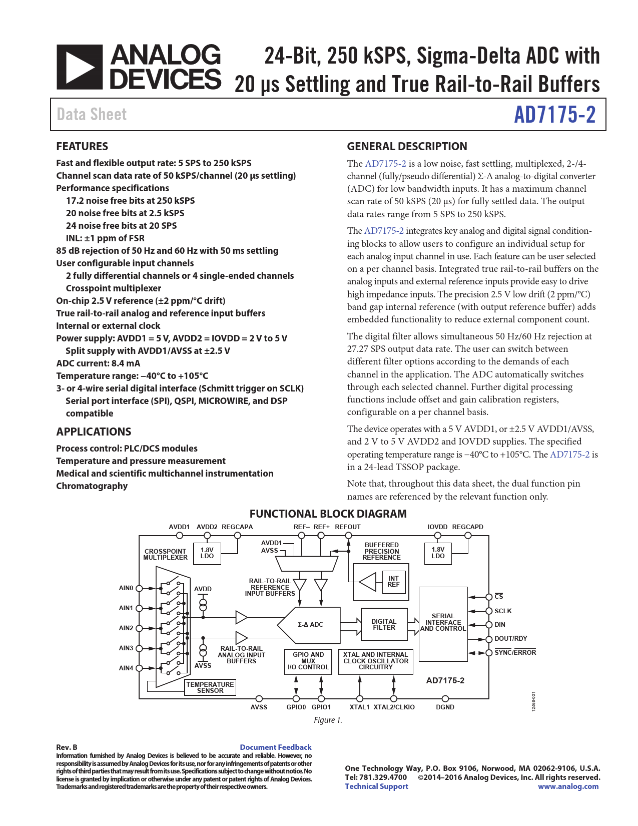 24-Bit, 250 kSPS, Sigma-Delta ADC with 20 µs Settling and True Rail-to-Rail Buffers Data Sheet AD7175-2