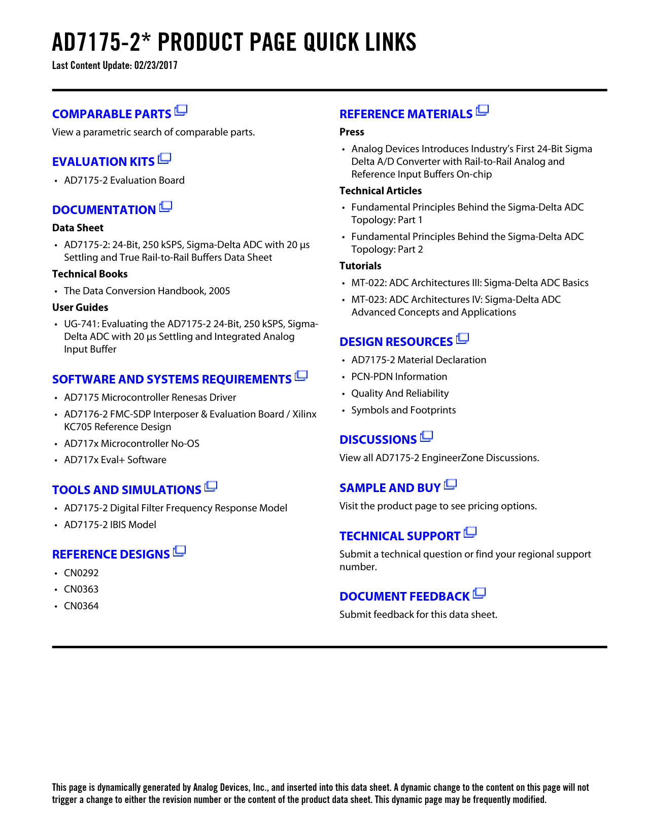 This page is dynamically generated by Analog Devices, Inc., and inserted into this data sheet. A dynamic change to the content on this page will not trigger a change to either the revision number or the content of the product data sheet. This dynamic page may be frequently modified.