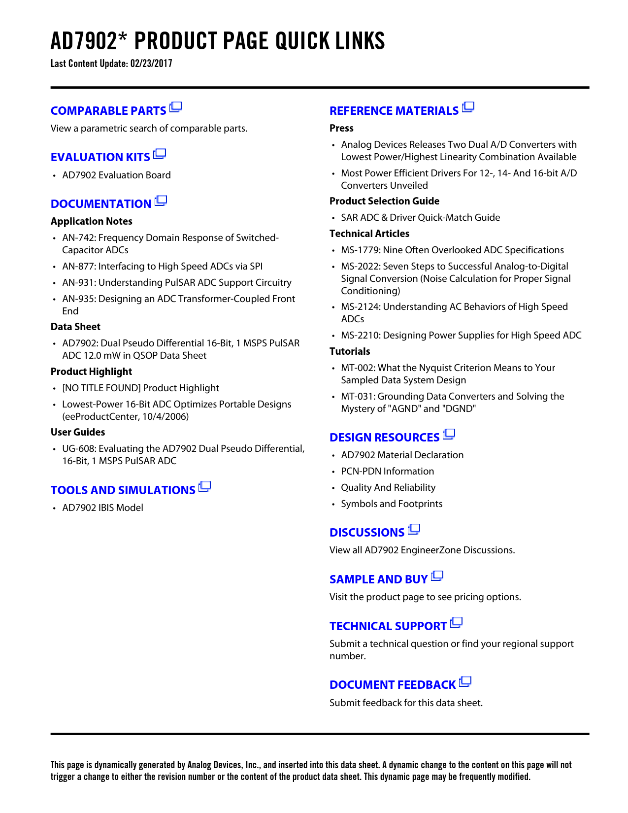 This page is dynamically generated by Analog Devices, Inc., and inserted into this data sheet. A dynamic change to the content on this page will not trigger a change to either the revision number or the content of the product data sheet. This dynamic page may be frequently modified.