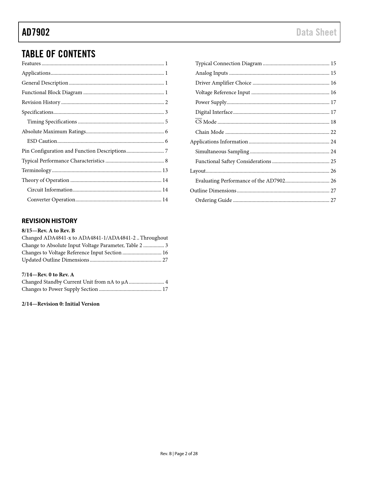 AD7902 Data Sheet TABLE OF CONTENTS REVISION HISTORY 8/15—Rev A to Rev B 7/14—Rev 0 to Rev A
