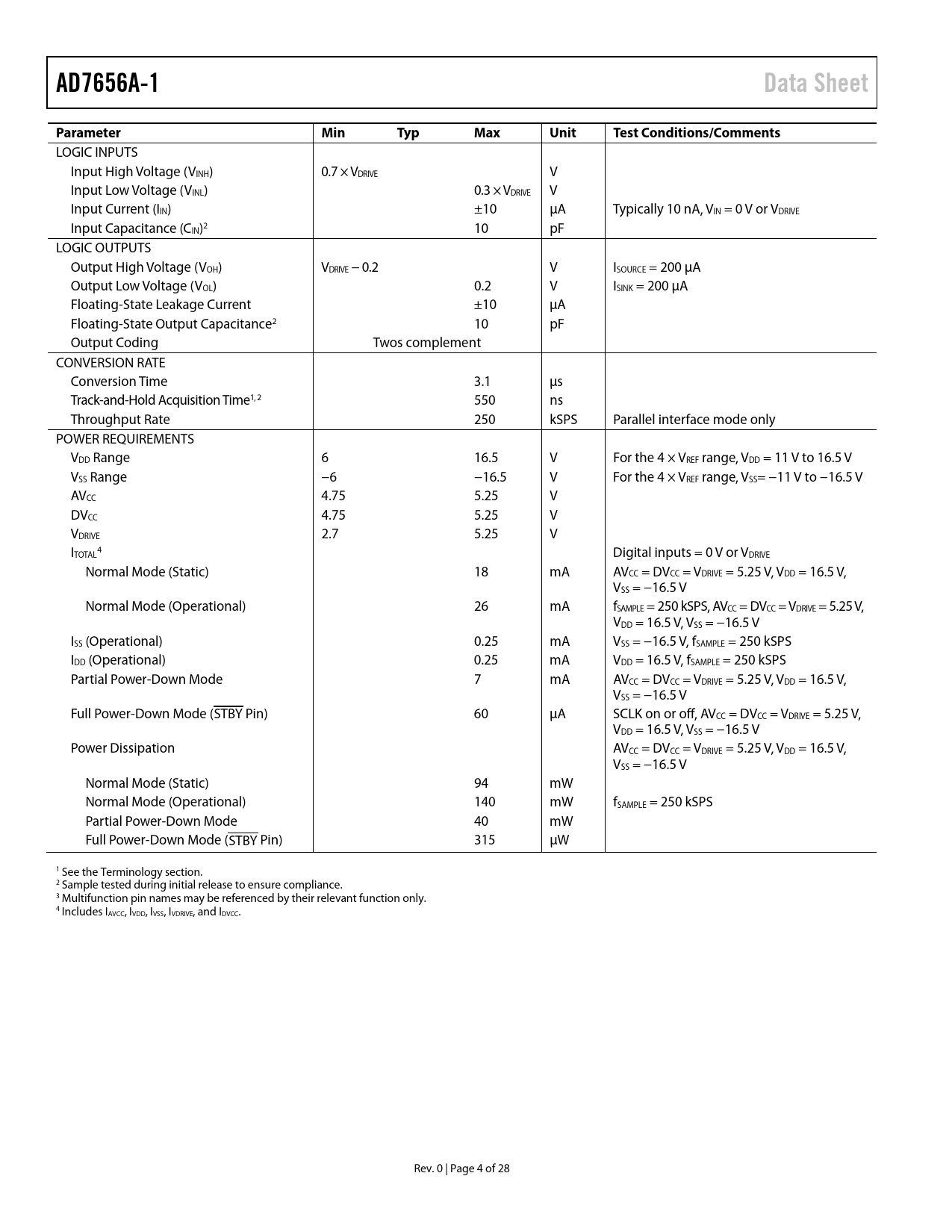 AD7656A-1 Data Sheet Parameter Min Typ Max Unit Test Conditions/Comments
