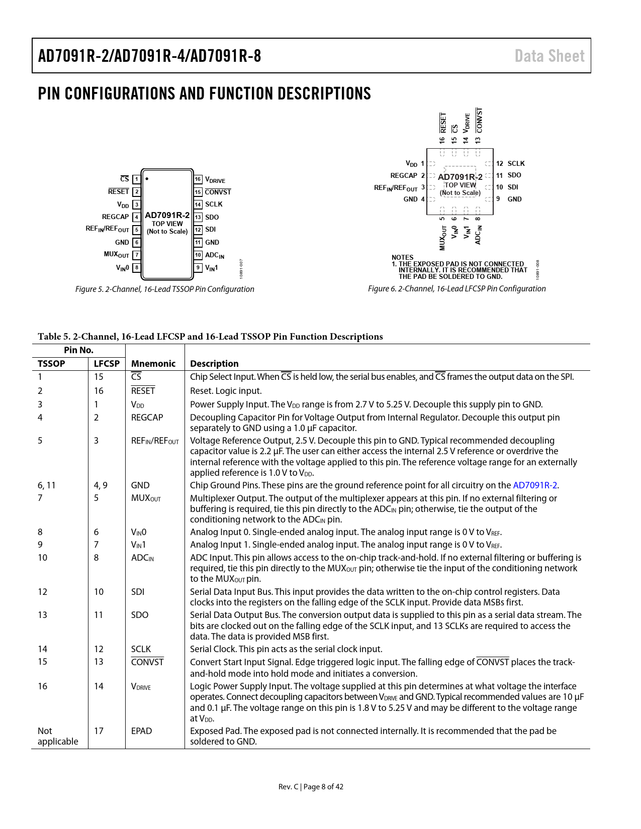 Seiten / Seite42 / 8 — AD7091R-2/AD7091R-4/AD7091R-8. Data Sheet. PIN CONFIGURATIONS AND …