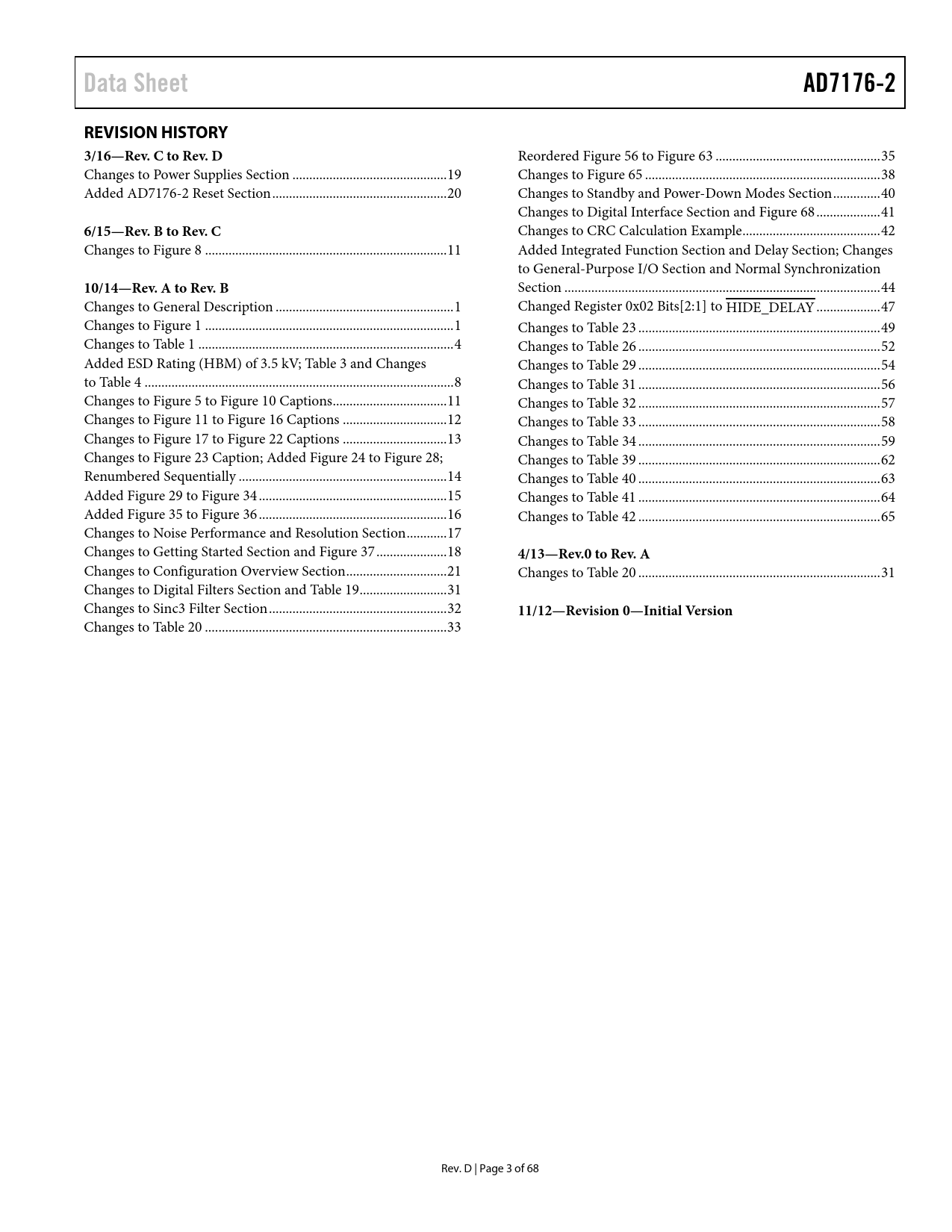 | Seiten / Seite | 69 / 4 — Data Sheet. AD7176-2. REVISION HISTORY 3/16—Rev. C to Rev. D. 6/15—Rev. B … |