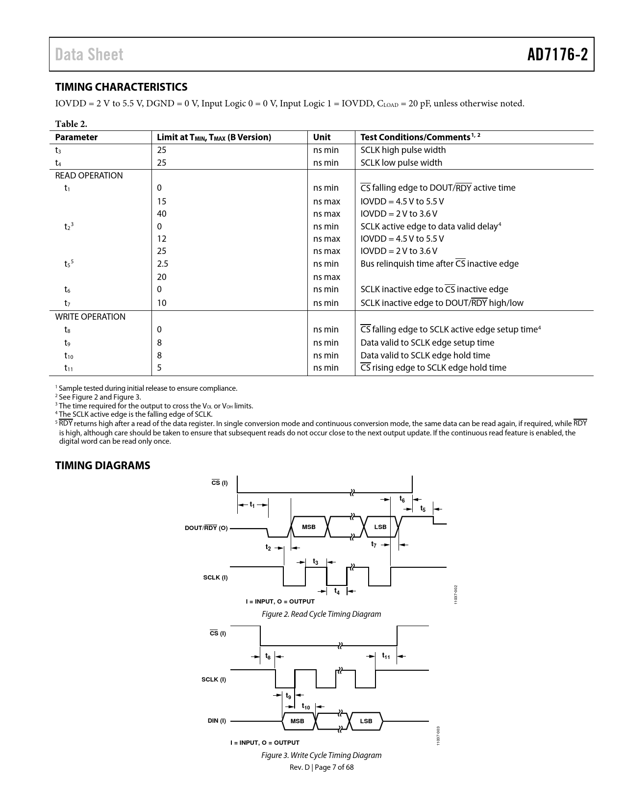 Data Sheet. AD7176-2. TIMING CHARACTERISTICS. Table 2. Parameter. Limit at TMIN, TMAX (B Version). Unit