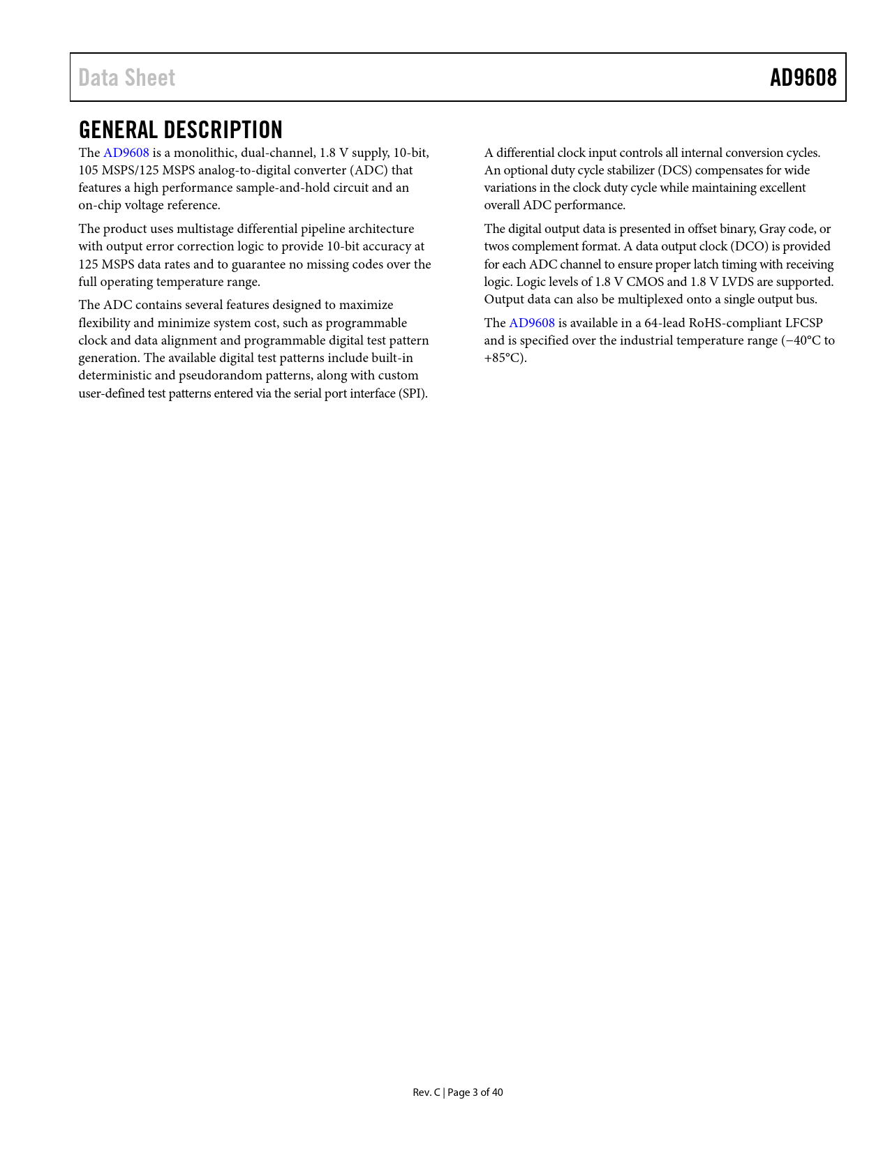 Seiten / Seite41 / 4 — Data Sheet. AD9608. GENERAL DESCRIPTION