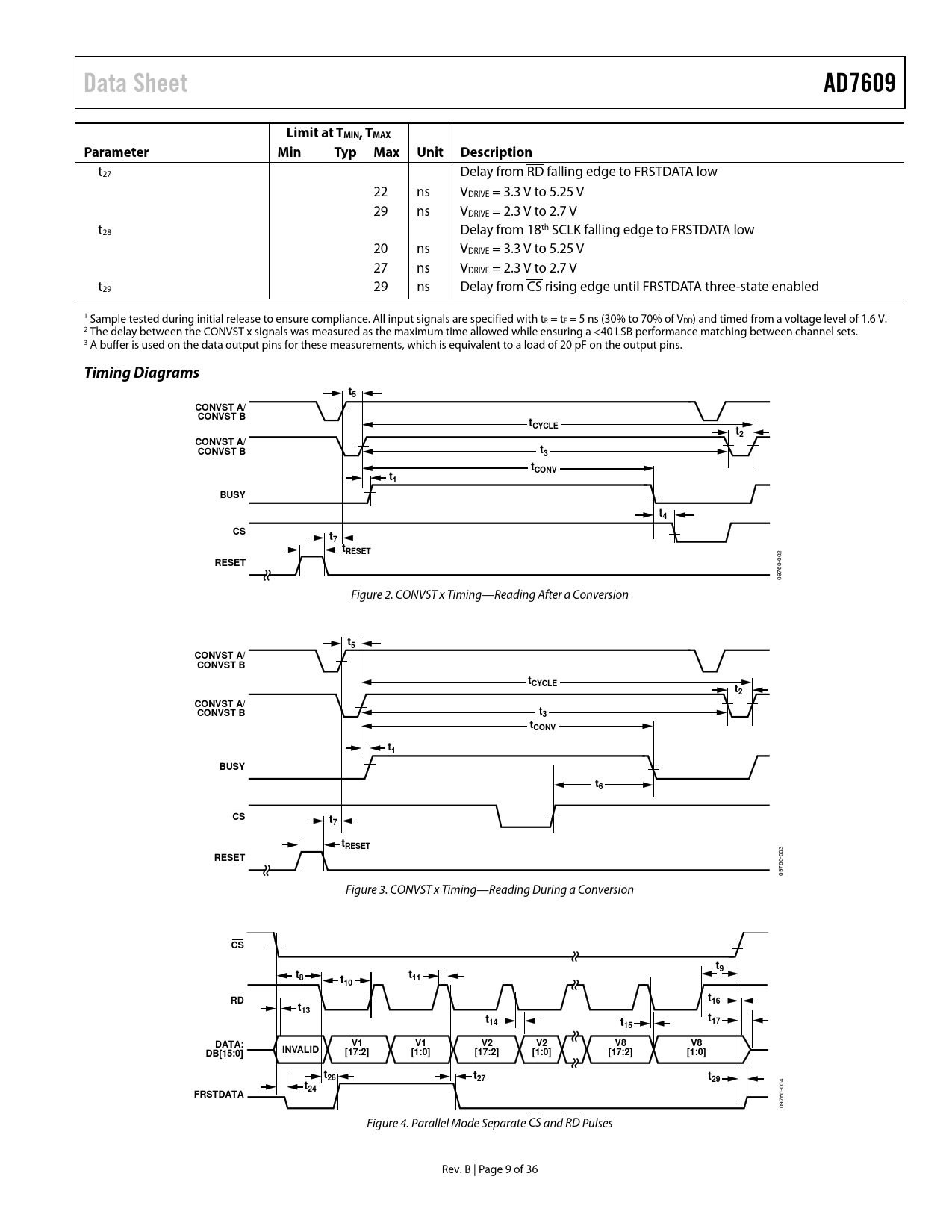 Data Sheet AD7609 Limit at TMIN, TMAX Parameter Min Typ Max Unit Description Timing Diagrams CONVST A/ CONVST B tCYCLE tCONV BUSY