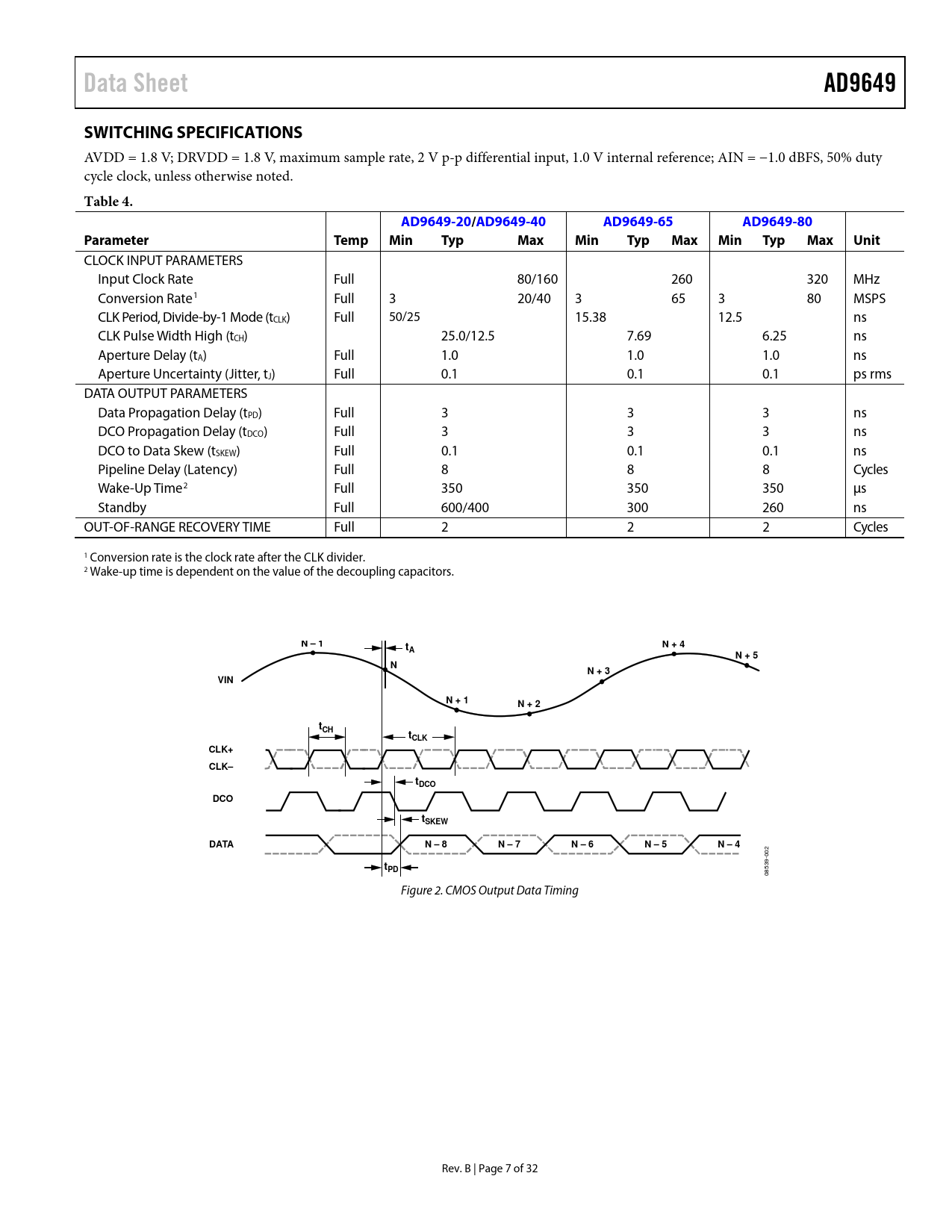 Data Sheet AD9649 SWITCHING SPECIFICATIONS