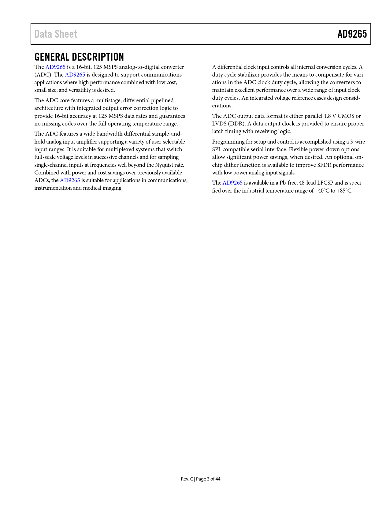 Seiten / Seite45 / 4 — Data Sheet. AD9265. GENERAL DESCRIPTION