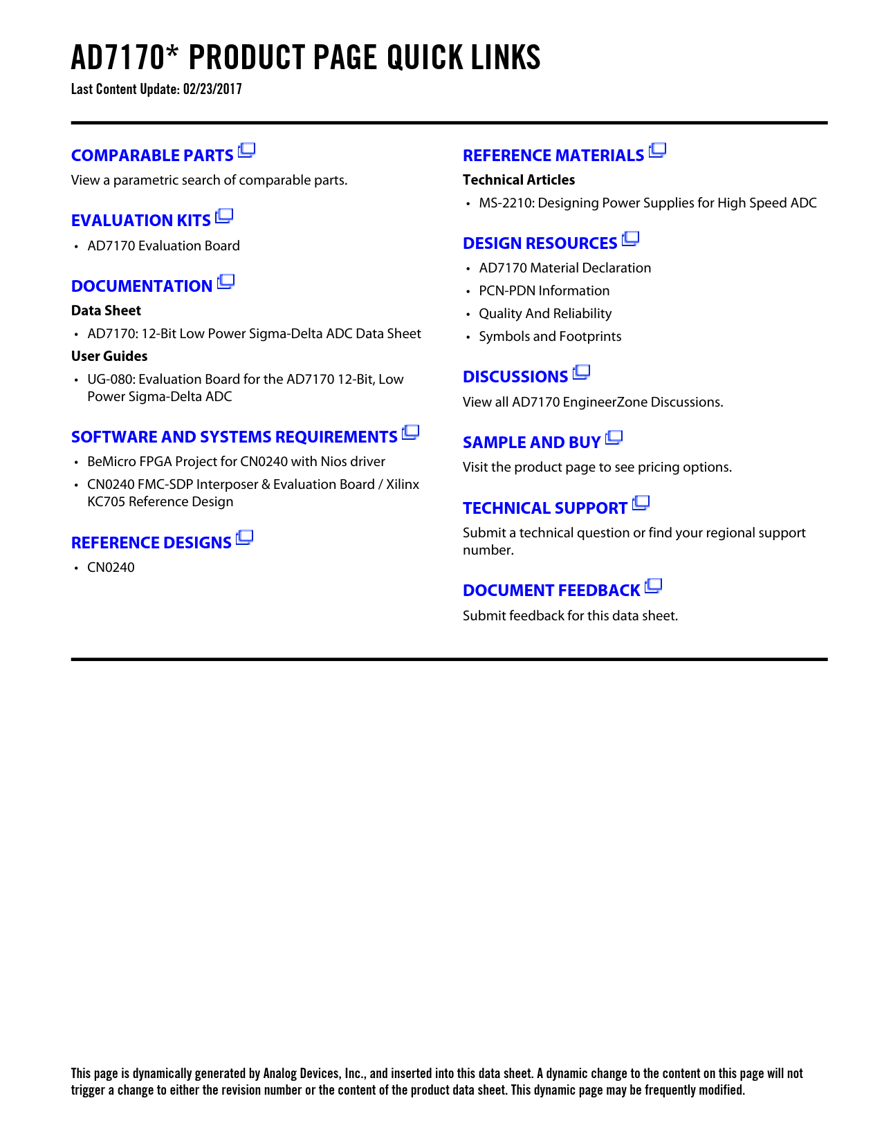 Seiten / Seite15 / 2 — AD7170* PRODUCT PAGE QUICK LINKS Last Content Update: 02/23/2017. …