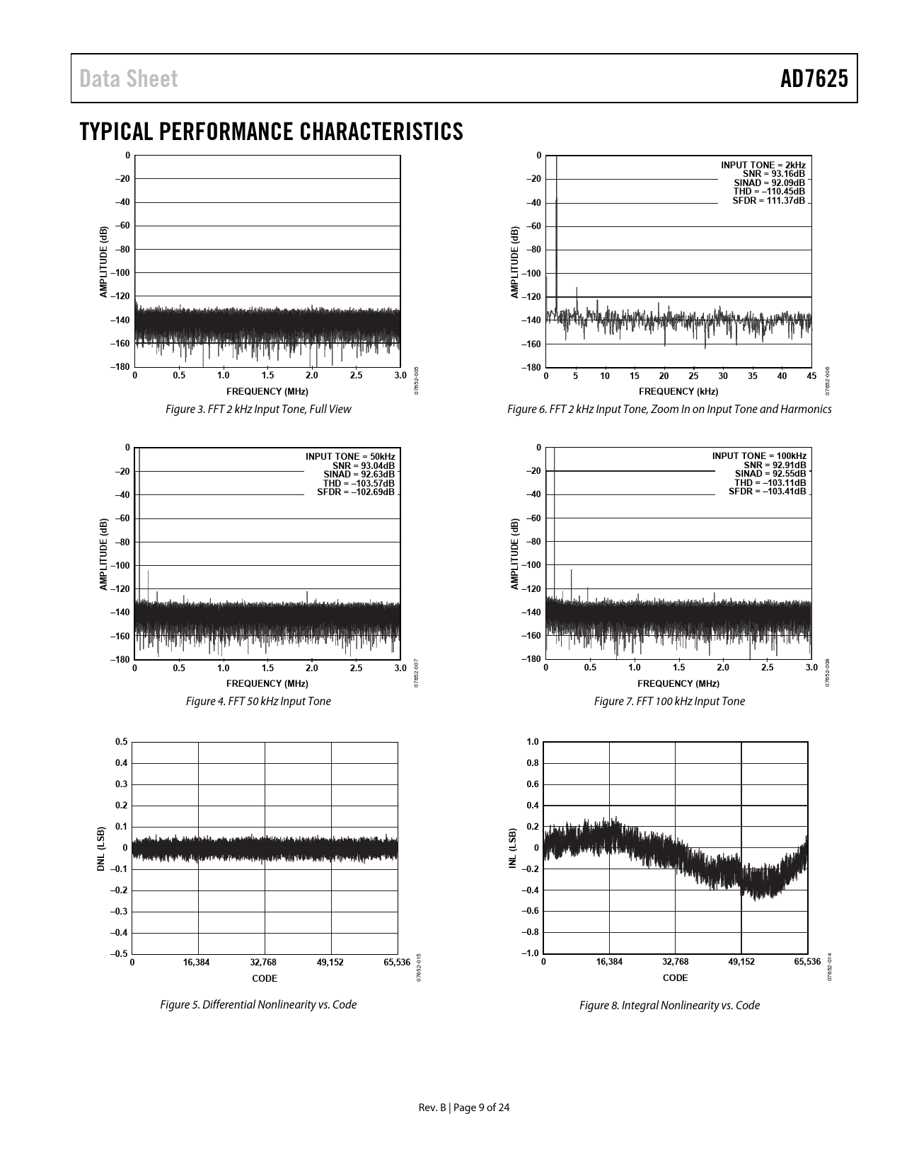 Data Sheet. AD7625. TYPICAL PERFORMANCE CHARACTERISTICS. INPUT TONE = 2kHz. –20. SNR = 93.16dB. SINAD = 92.09dB. THD = –110.45dB. –40