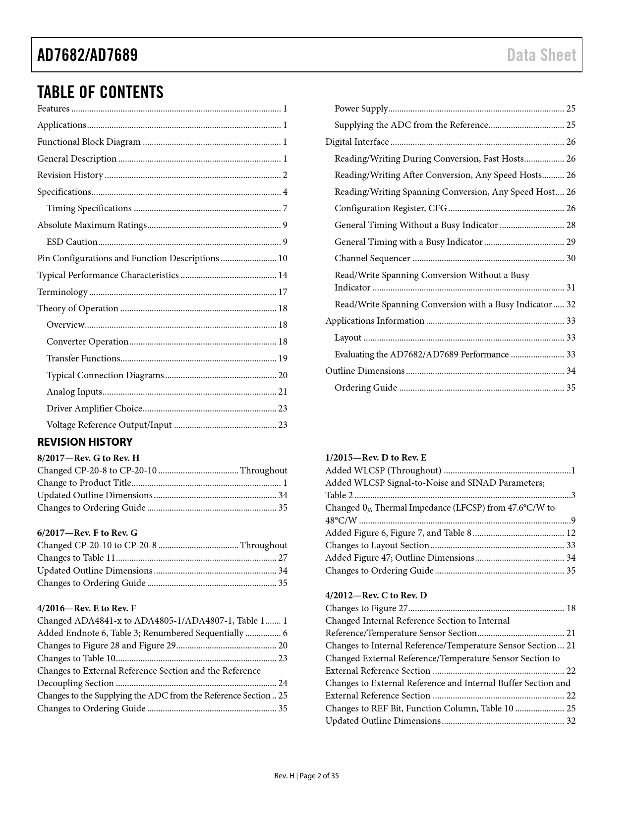 AD7682/AD7689 Data Sheet TABLE OF CONTENTS REVISION HISTORY 8/2017—Rev G to Rev H 1/2015—Rev D to Rev E
