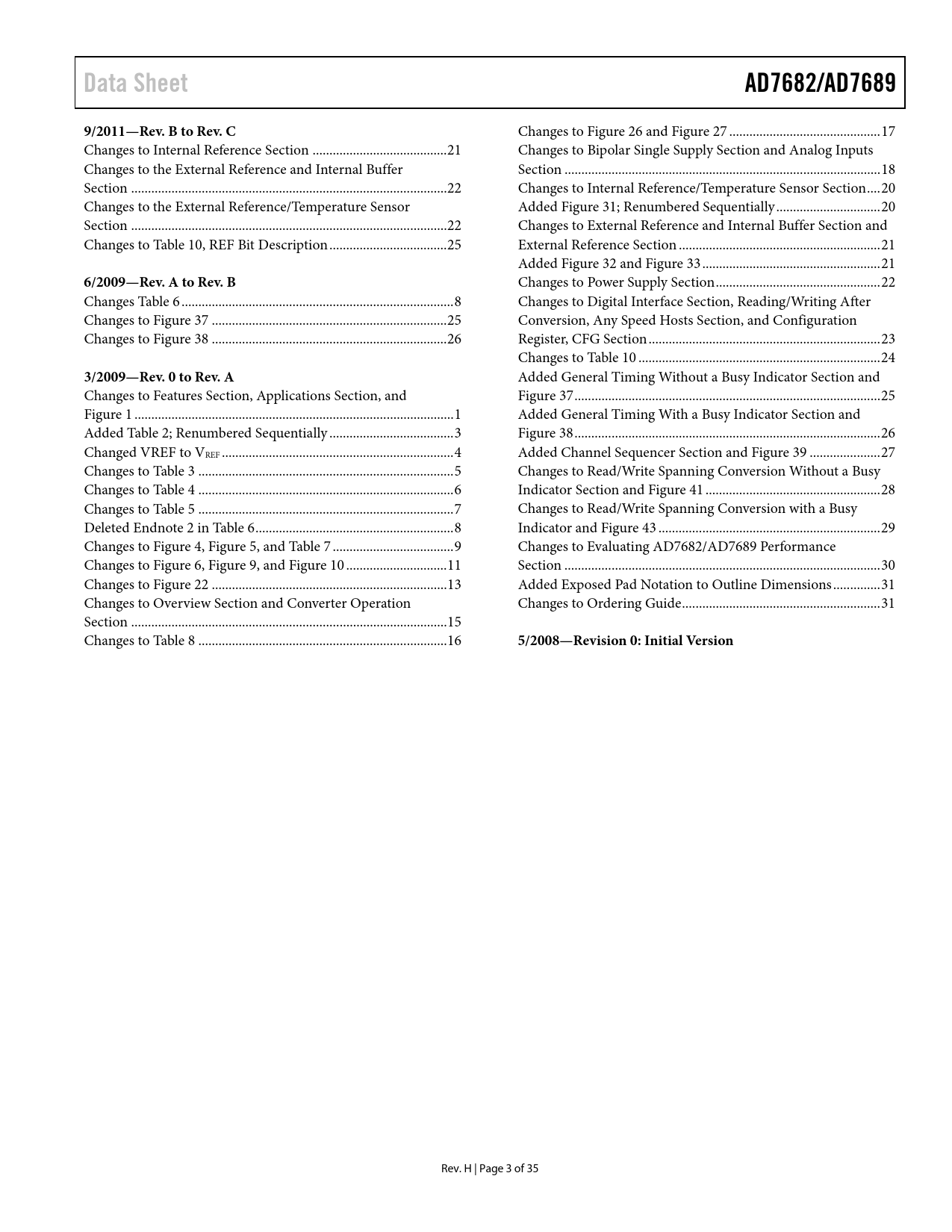 Seiten / Seite35 / 3 — Data Sheet. AD7682/AD7689. 9/2011—Rev. B to Rev. C. 6/2009—Rev. A to Rev. …