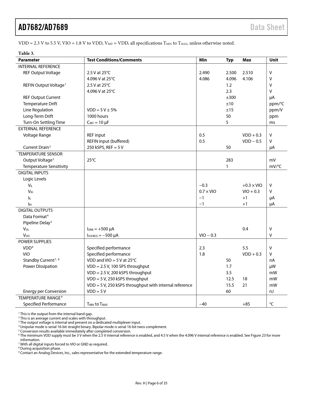 Seiten / Seite35 / 6 — AD7682/AD7689. Data Sheet. Table 3. Parameter. Test Conditions/Comments. …