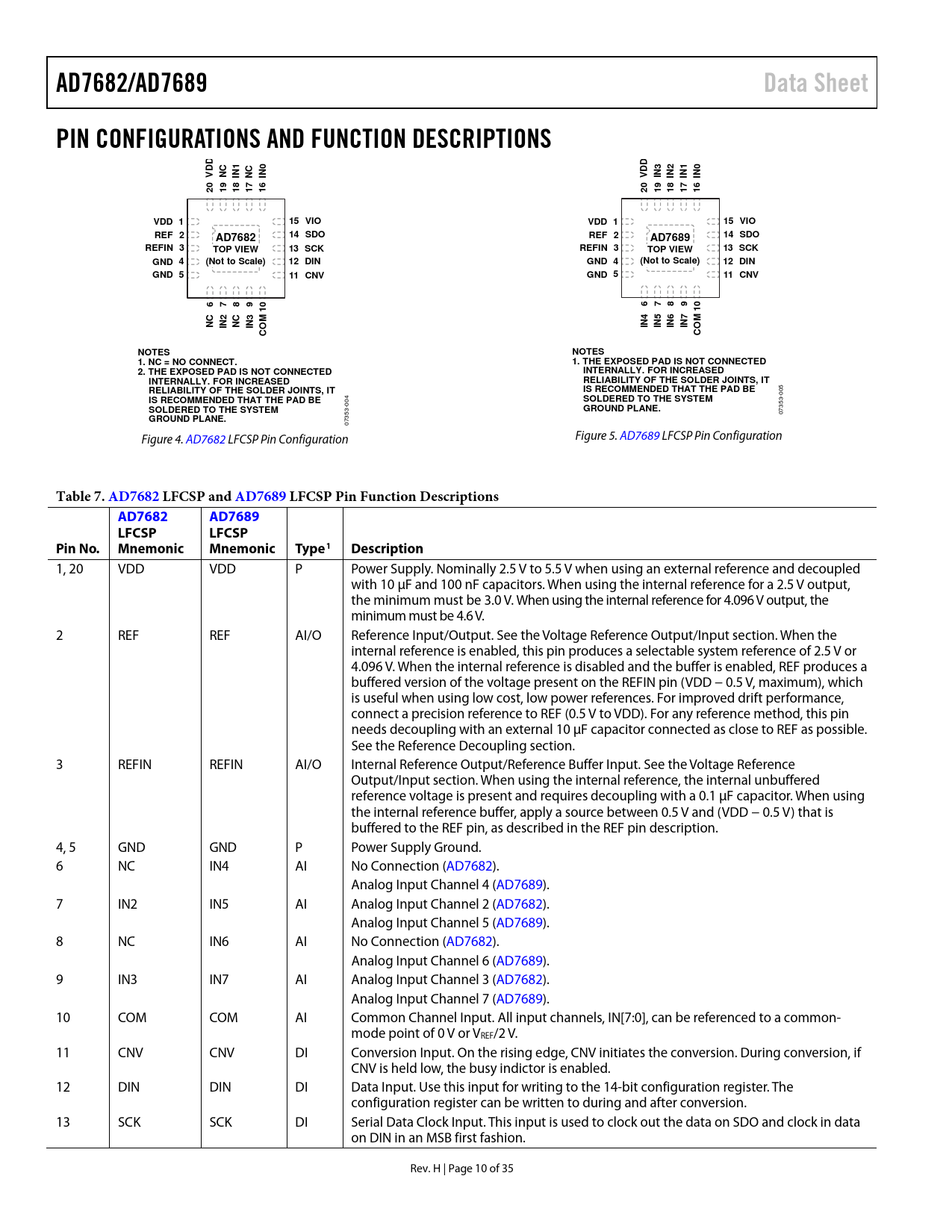 07353- Figure 4. AD7682 LFCSP Pin Configuration Figure 5. AD7689 LFCSP Pin Configuration