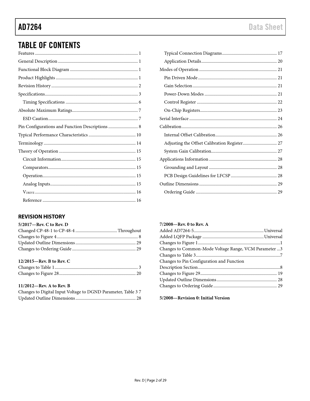Seiten / Seite30 / 3 — AD7264. Data Sheet. TABLE OF CONTENTS. REVISION HISTORY 5/2017—Rev. C to …