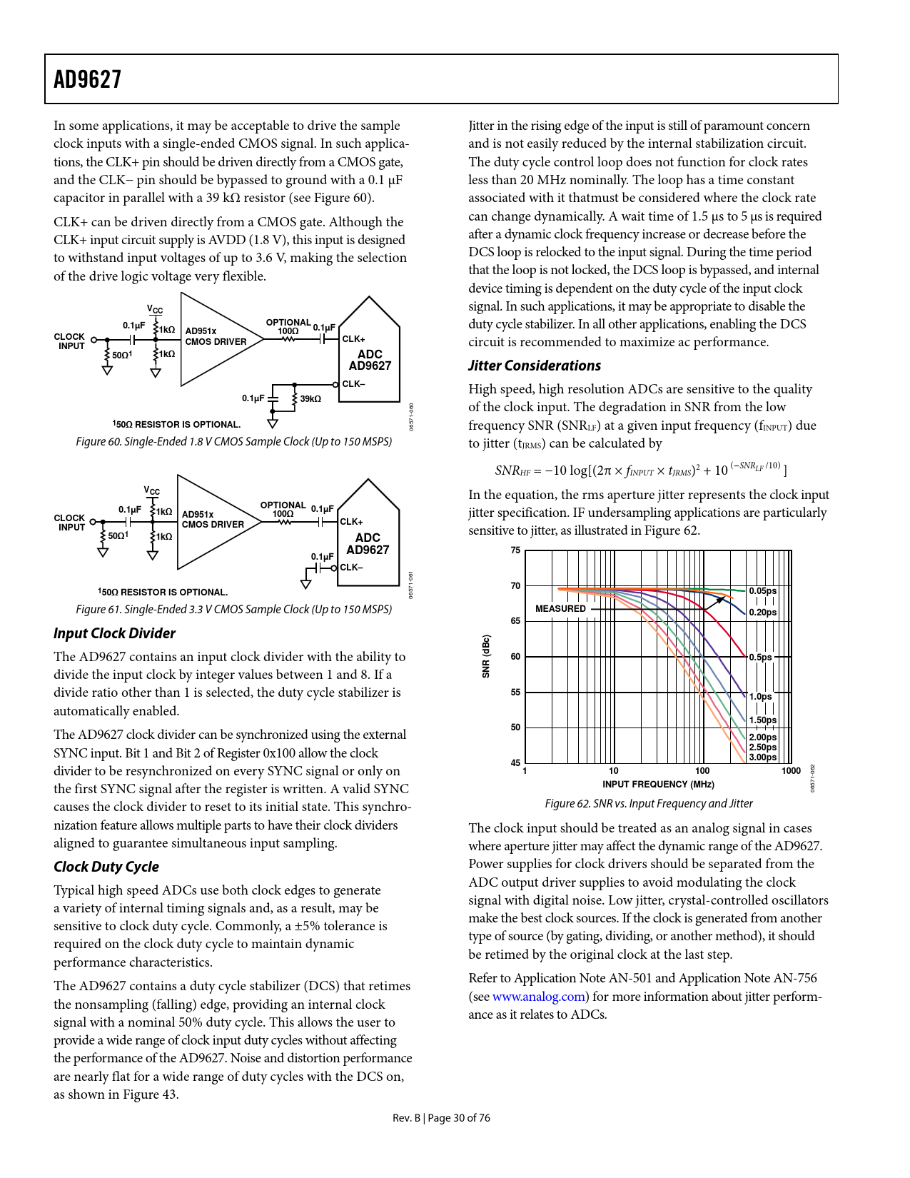 50Ω1 1kΩ ADC AD9627 Jitter Considerations CLK–
