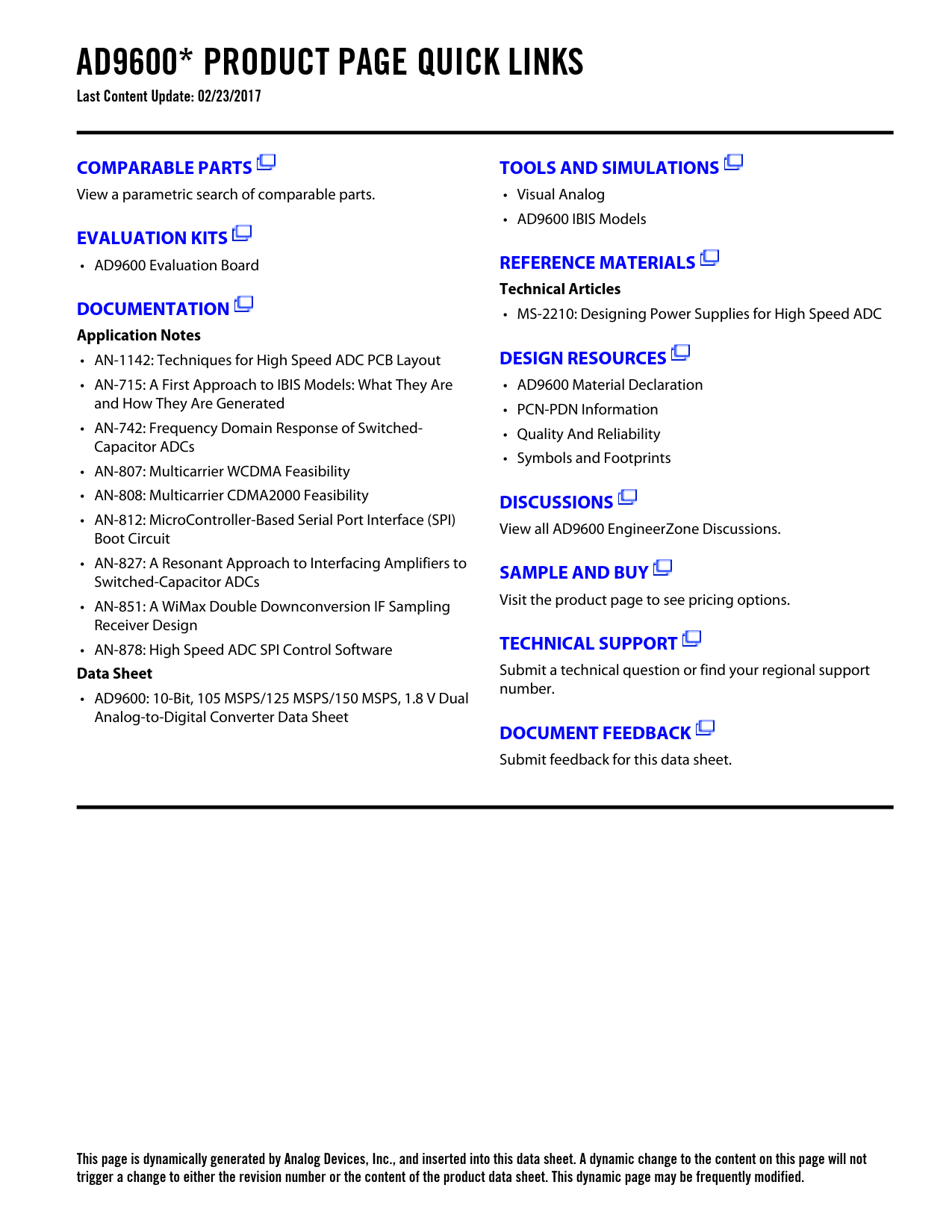 Seiten / Seite73 / 2 — AD9600* PRODUCT PAGE QUICK LINKS Last Content Update: 02/23/2017. …