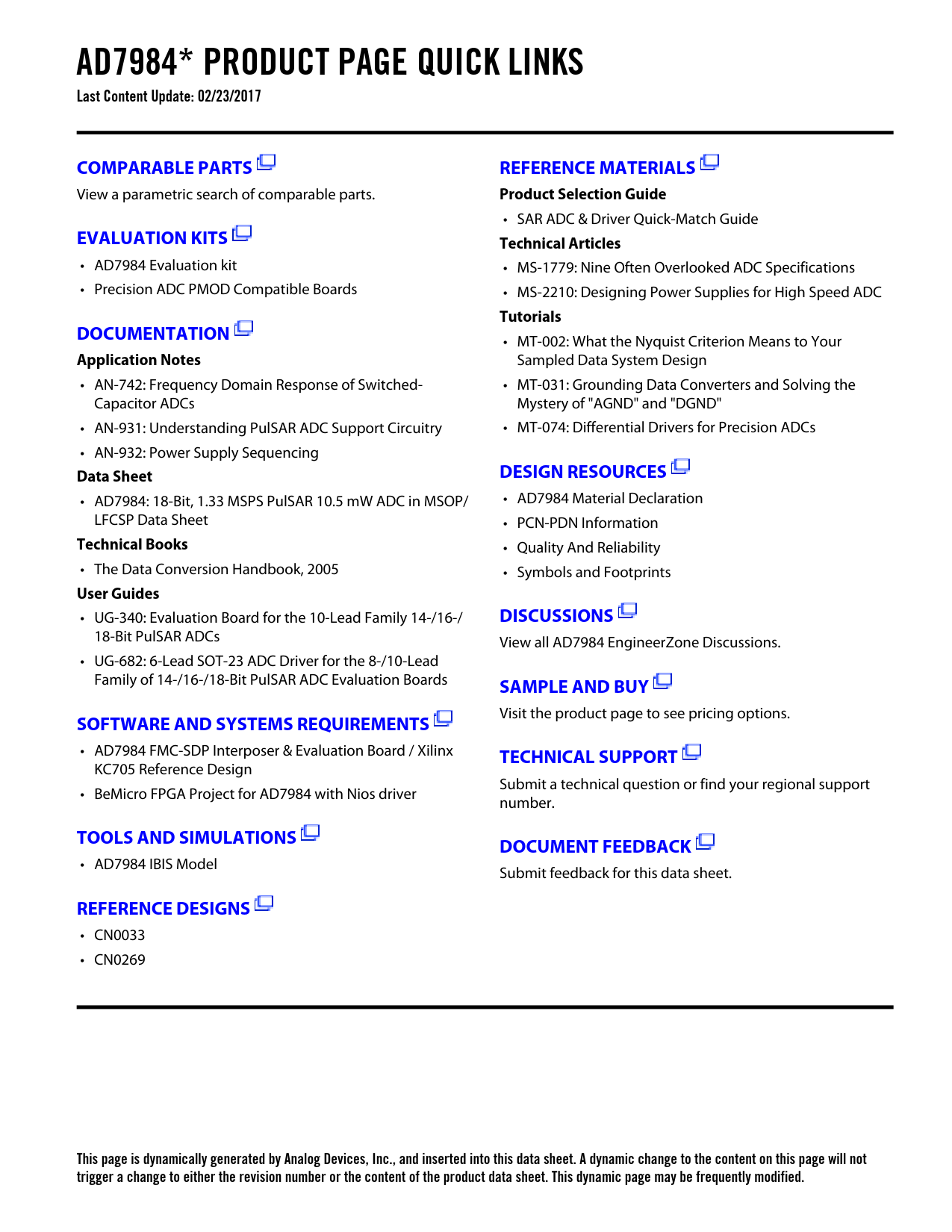 Seiten / Seite25 / 2 — AD7984* PRODUCT PAGE QUICK LINKS Last Content Update: 02/23/2017. …