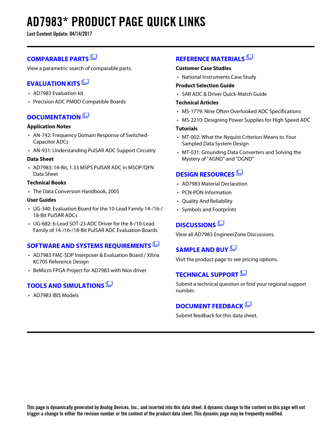 • AD7983 Material Declaration • The Data Conversion Handbook, 2005 • PCN-PDN Information
