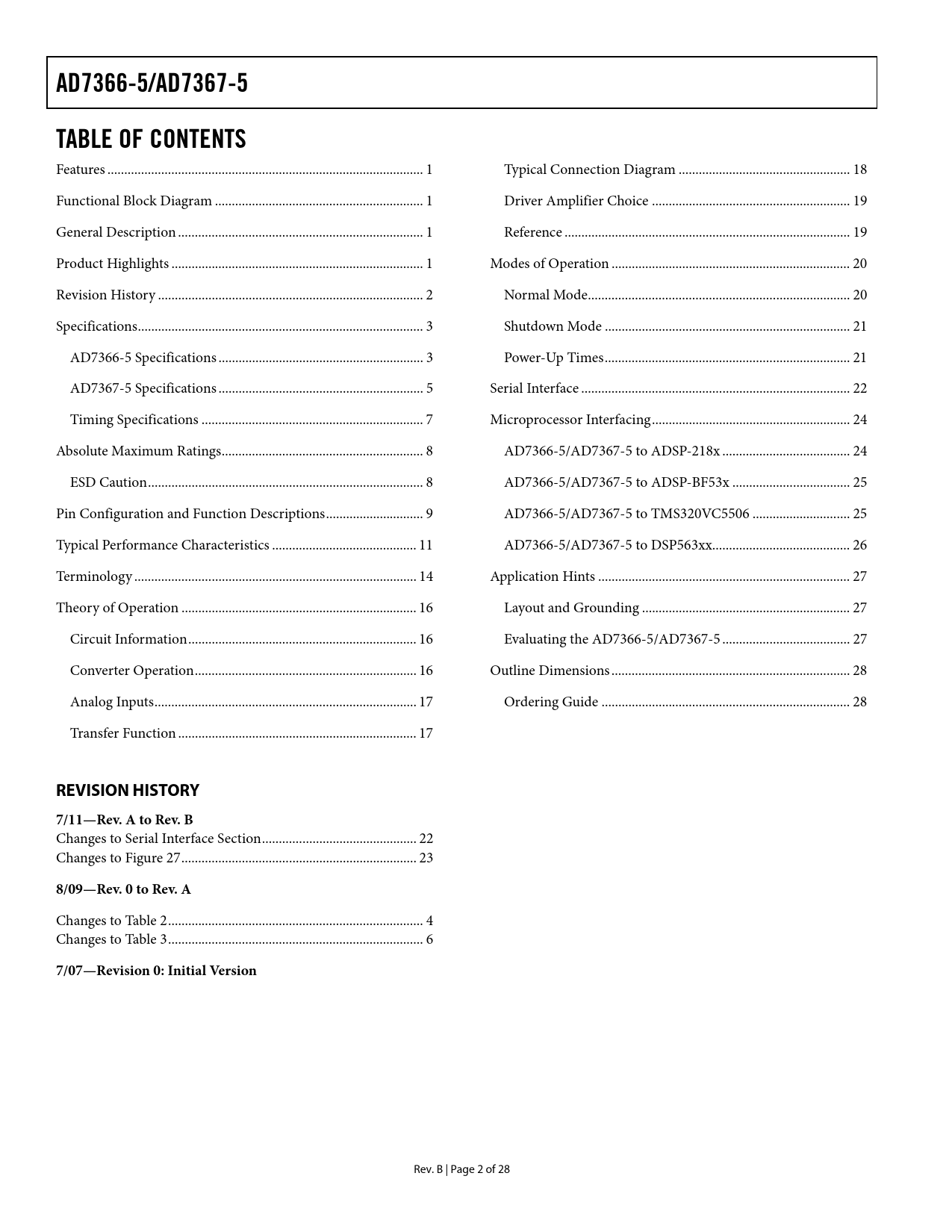 Seiten / Seite28 / 2 — AD7366-5/AD7367-5. TABLE OF CONTENTS. REVISION HISTORY. 7/11—Rev. A to …