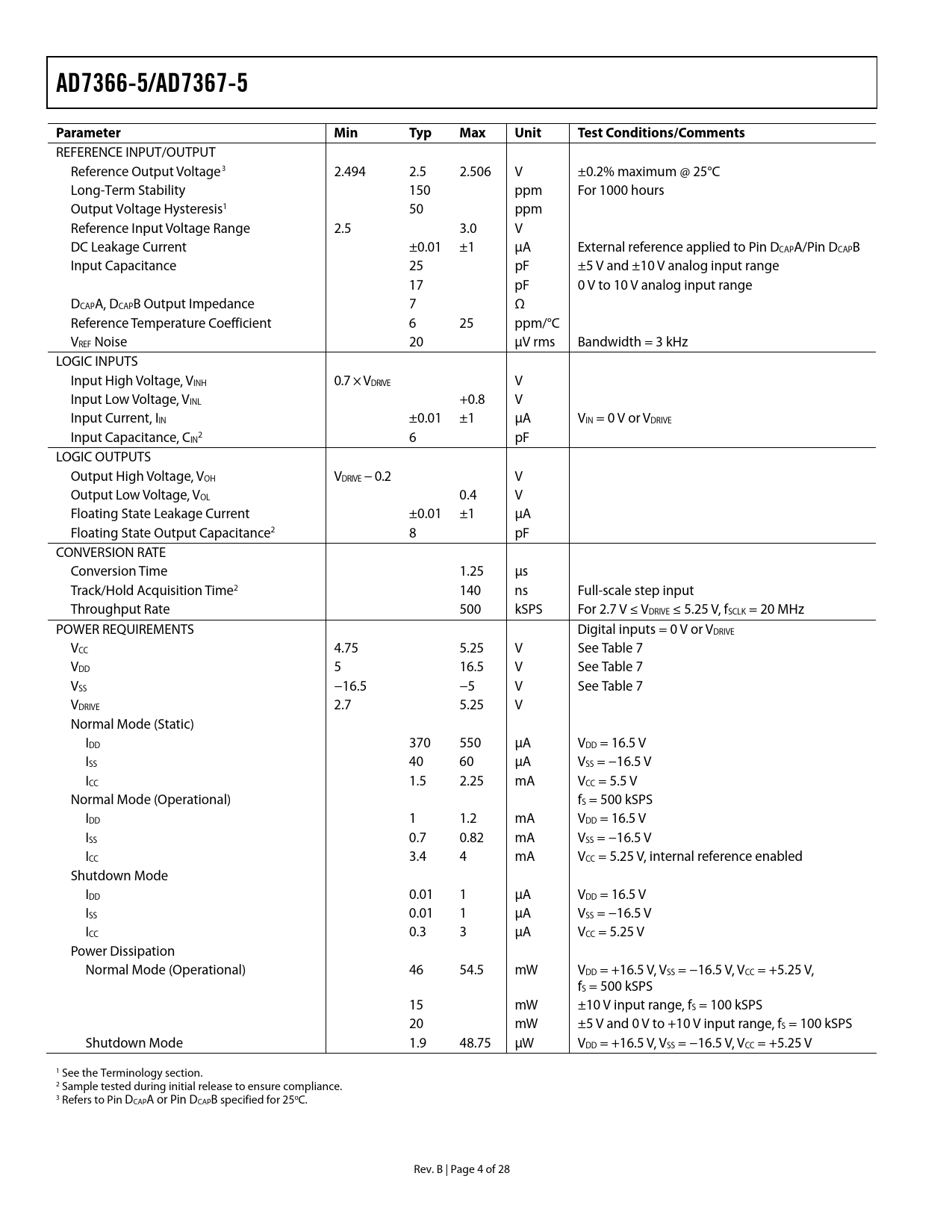 Seiten / Seite28 / 4 — AD7366-5/AD7367-5. Parameter Min. Typ. Max. Unit. Test. …