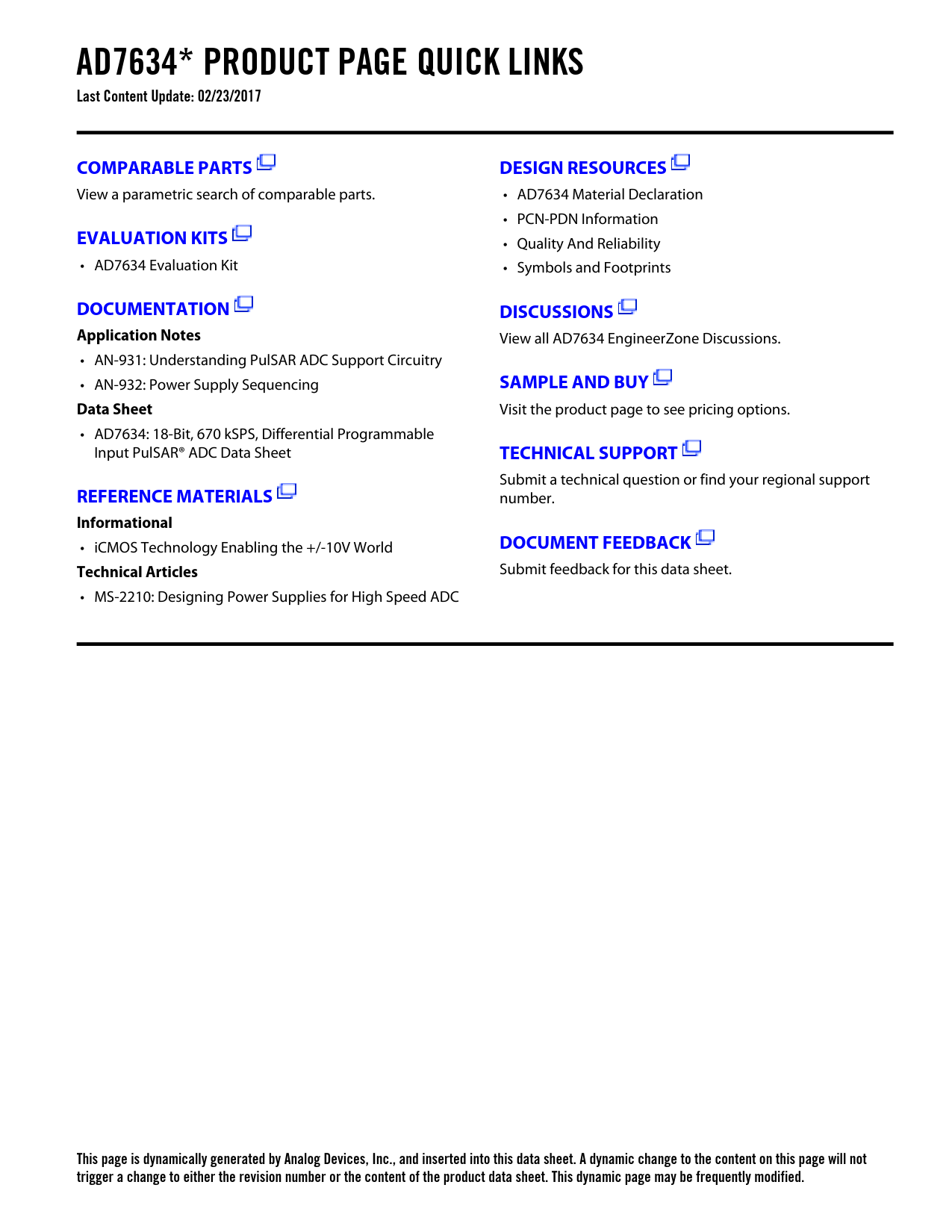 This page is dynamically generated by Analog Devices, Inc., and inserted into this data sheet. A dynamic change to the content on this page will not trigger a change to either the revision number or the content of the product data sheet. This dynamic page may be frequently modified.