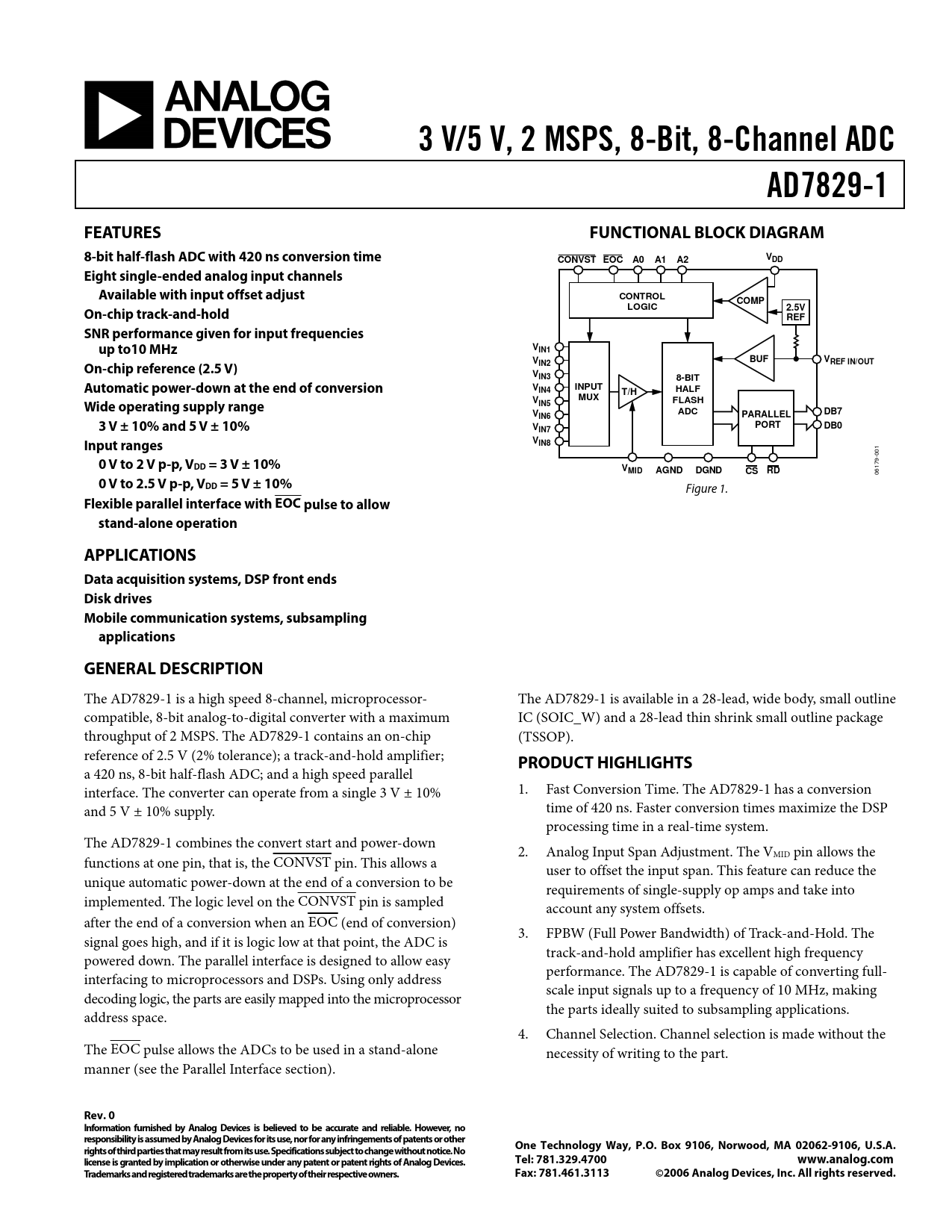 3 V/5 V, 2 MSPS, 8-Bit, 8-Channel ADC. AD7829-1. FEATURES. FUNCTIONAL BLOCK DIAGRAM
